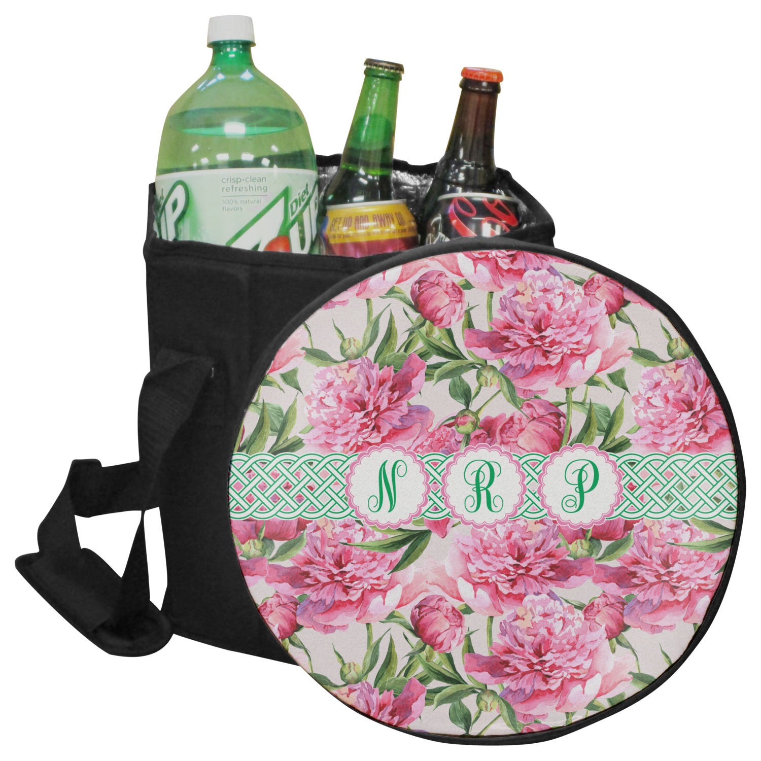 Our collapsible insulated coolers feature a unique six-sided hexagon shape, are lightweight, durable and can be turned into a seat. This cooler is fully insulated with silver foil lining to keep food and drinks hot or cold, and has a 12-quart capacity. Although this cooler collapses for easy transport, hidden inside are composition panels made of sturdy wood that give the frame strength and allow this cooler to be used as a seat. Simply sit down on the personalized cover and give your legs a break! (Maximum weight capacity of 200 pounds.)