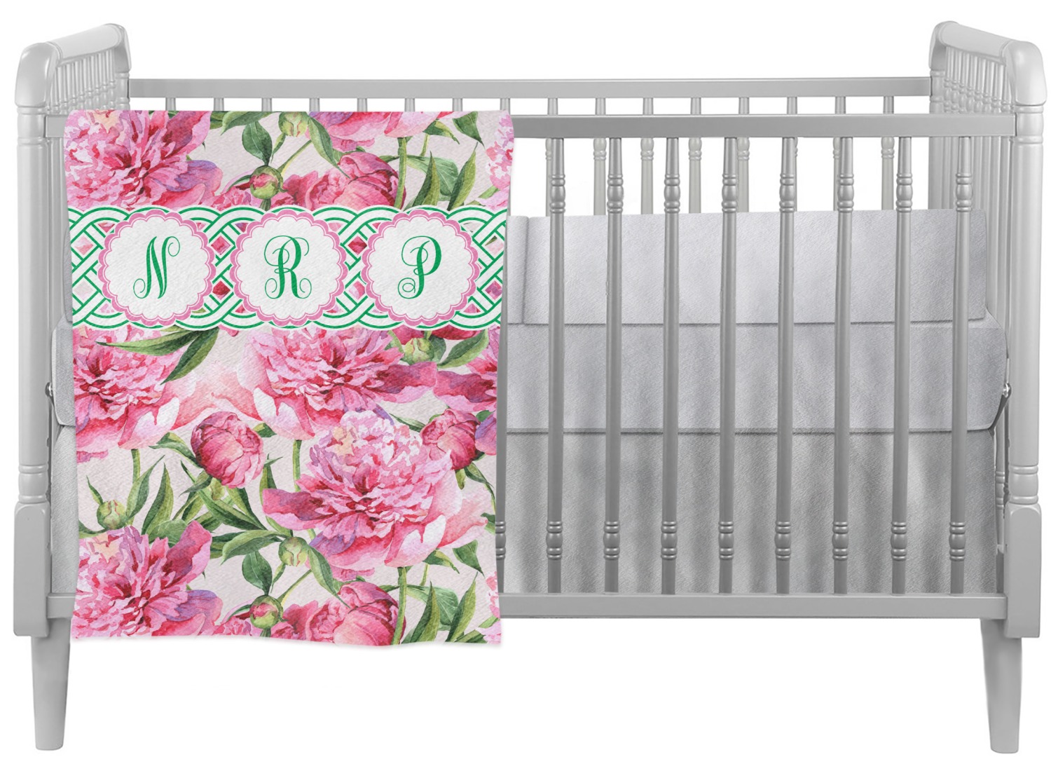 We chose to personalize it with Celtic ribbon and triple scallop labels with initials in each one of the labels. The coordinating design is also stunning with stripes of pink on the bottom.