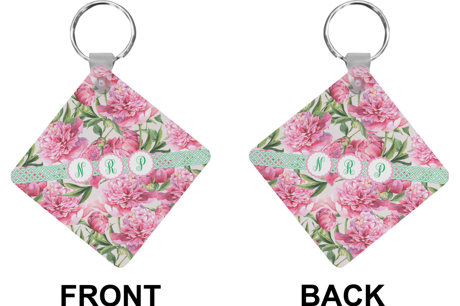 Our personalized keychains attach to the included metal, split key ring with a plastic, removable snap. Since a metal ring is included with your purchase, you have the liberty to keep your keys together on the ring, with or without your unique keychain. We offer this keychain in three different shapes: circle, heart, or diamond. We print your personalized design(s) on both sides of the key chain, and the surface has a glossy, reflective finish that only emphasizes your design. Each keychain is approximately 2.25 by 2.25 inches.