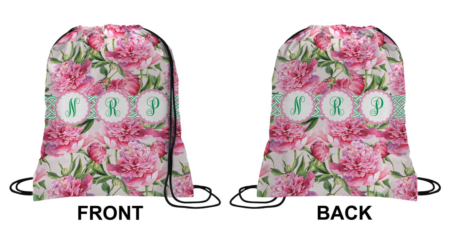 Our drawstring backpacks are custom made for you here in the USA. We offer a great selection of cinch bags and it is your choice to personalize them with the text of your choice, in the format of your choice i.e. monogram, name, initial, name & initial. We offer many different patterns and prints; and many of the patterns are available in 45 different colors.