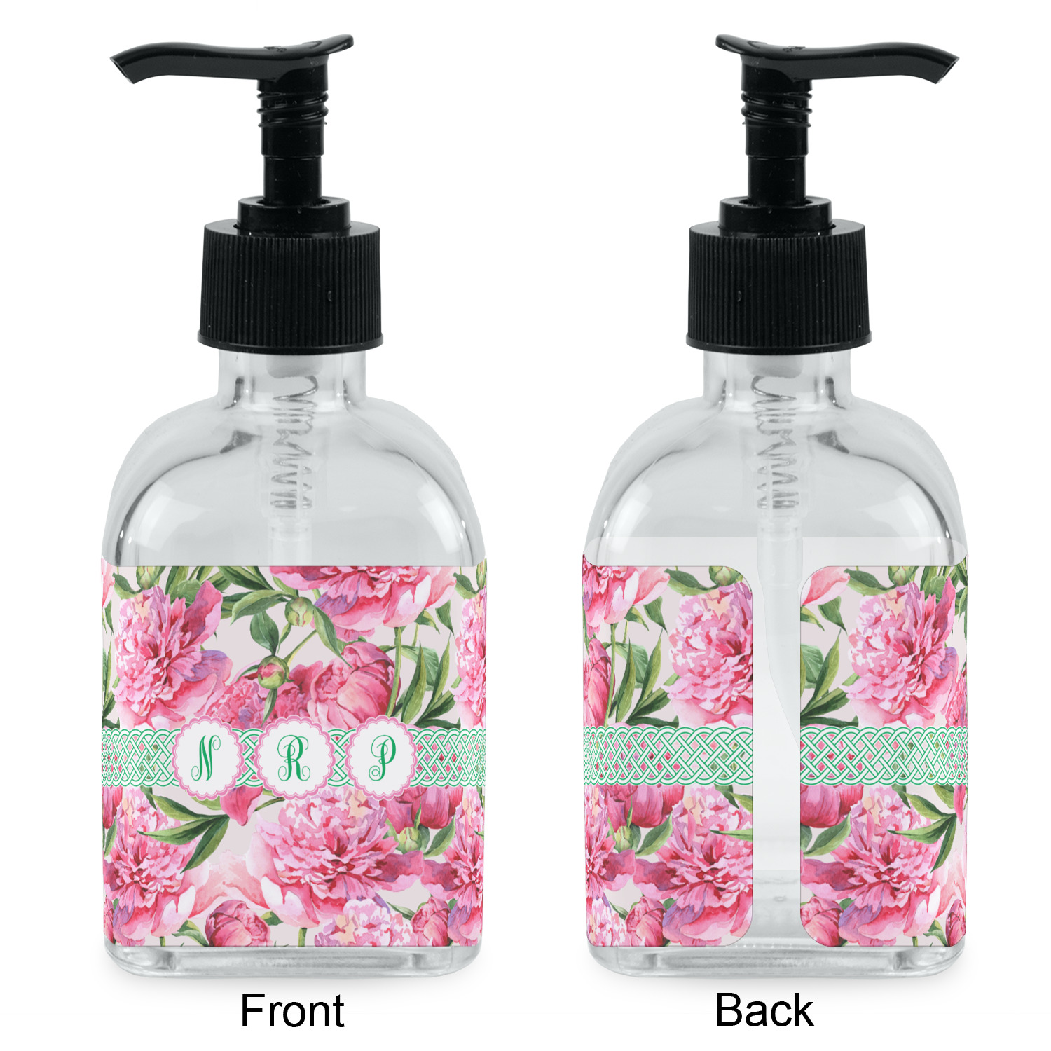 Crafted from a high-quality glass, these soap dispensers and lotion dispensers are durable and robust, while still looking elegant. They are sold with black pumps. Each soap dispenser pump measures at 6.5 by 2.25 inches. On these soap pumps, we display your customized design on a personalized vinyl adhesive on three sides. That way, you can judge how much liquid is in the bottles from the back.