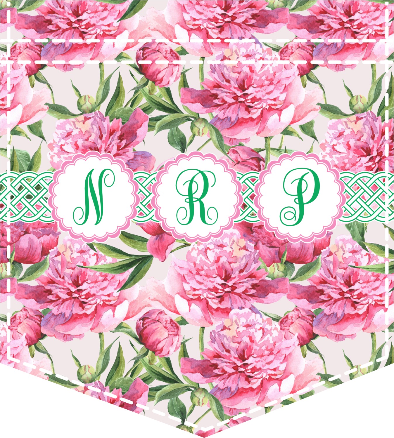 Our no sew faux pockets are easily customized by you. Our customization system allows you to change the personalization from a name to a monogram or to a name & initial or remove it completely. You can also change the colors, fonts, graphics, backgrounds etc. You can also upload your own picture / image or logo or we can custom create one for you or your event.