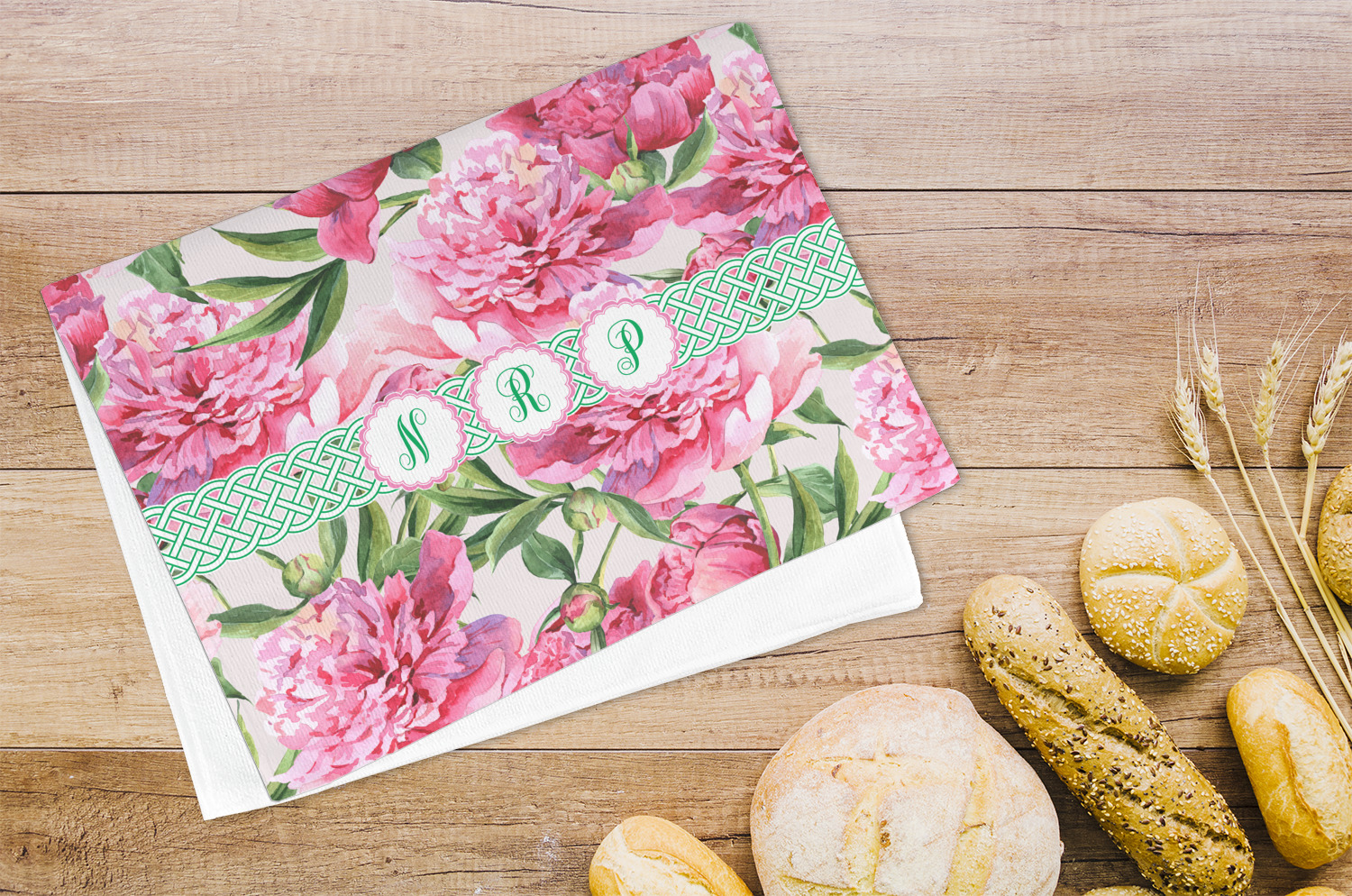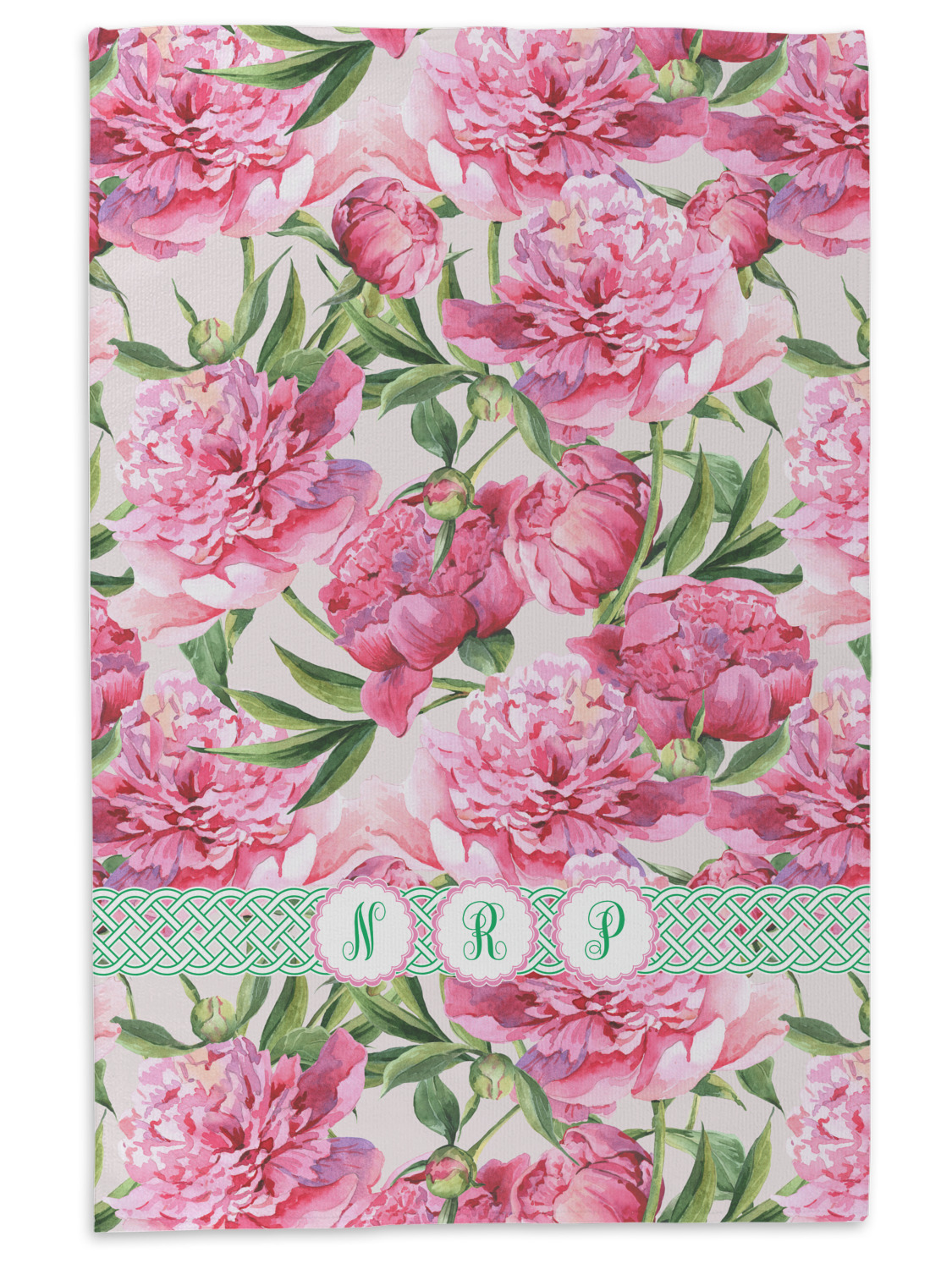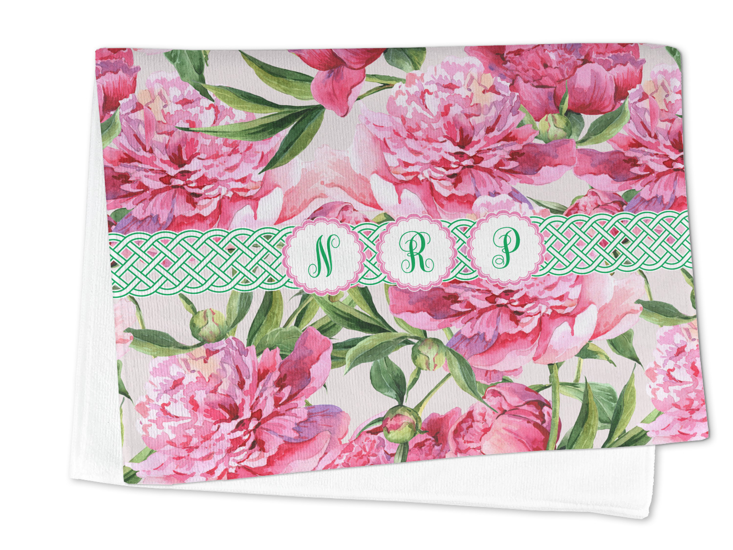 We chose to personalize it with Celtic ribbon and triple scallop labels with initials in each one of the labels. The coordinating design is also stunning with stripes of pink on the bottom.