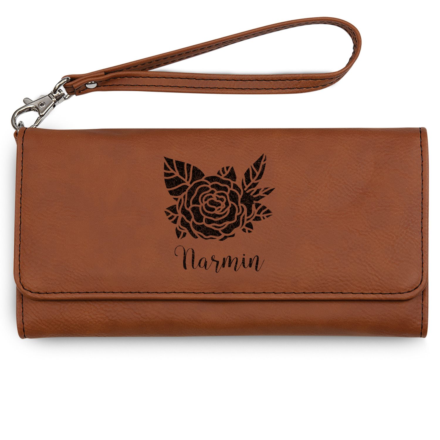 These personalized ladies leather wallets are available in 2 colors - rawhide / cognac and teal.