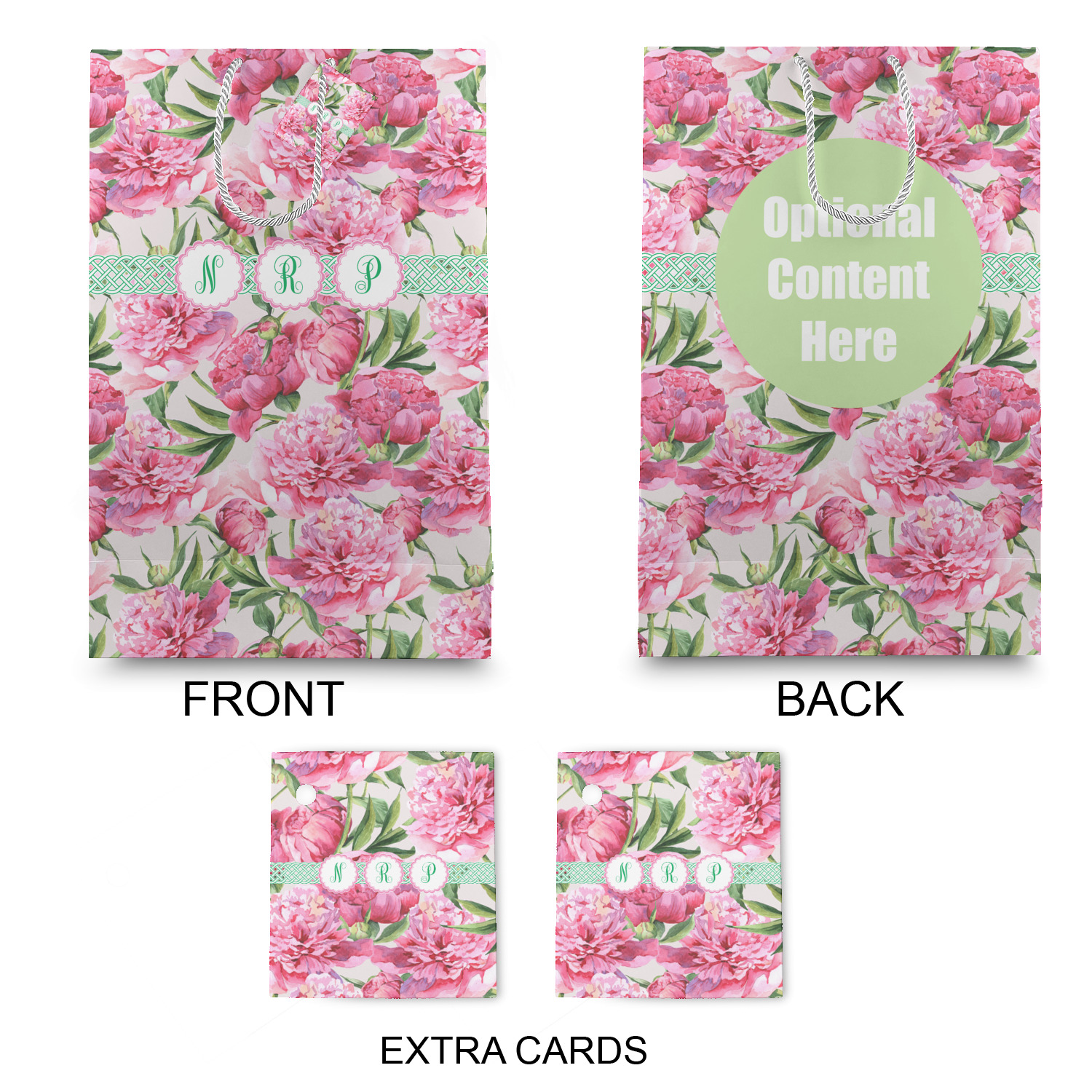 The bottom of the bag has a cardstock base to make the base more sturdy to hold up to all of your gifts. Each bag comes with one card on the rope handle and at least 1 extra card.