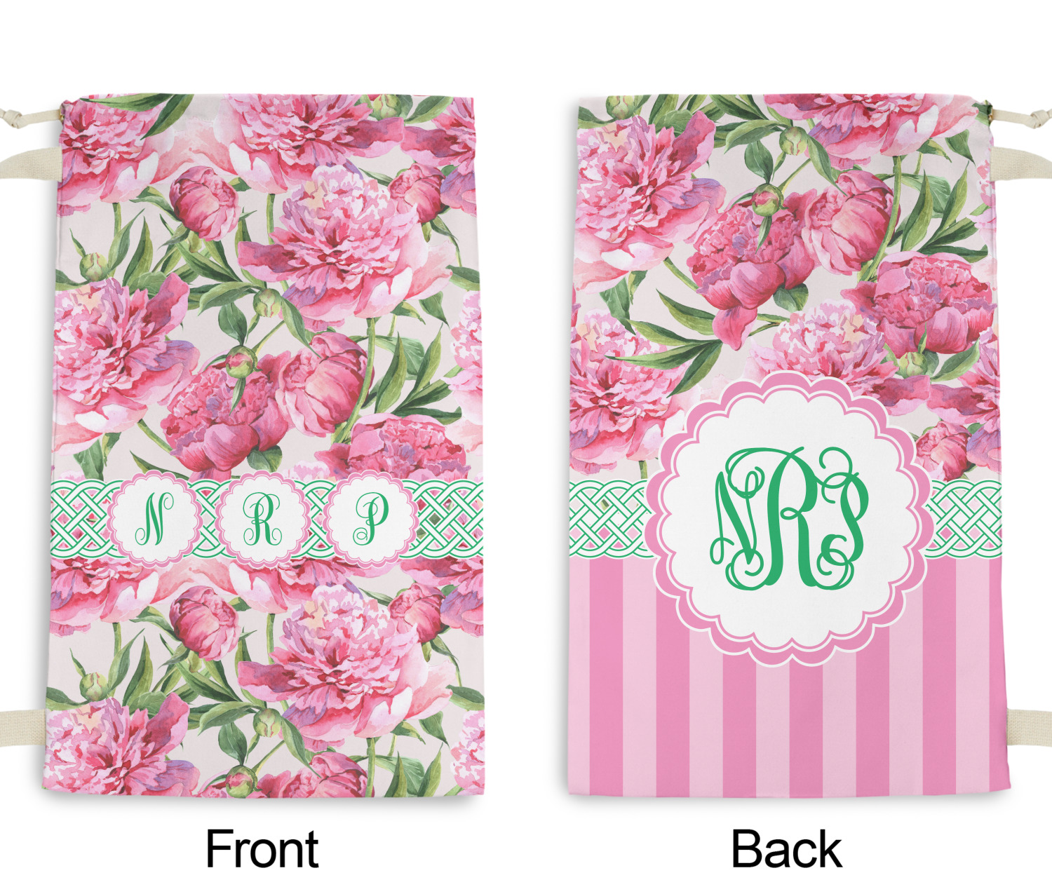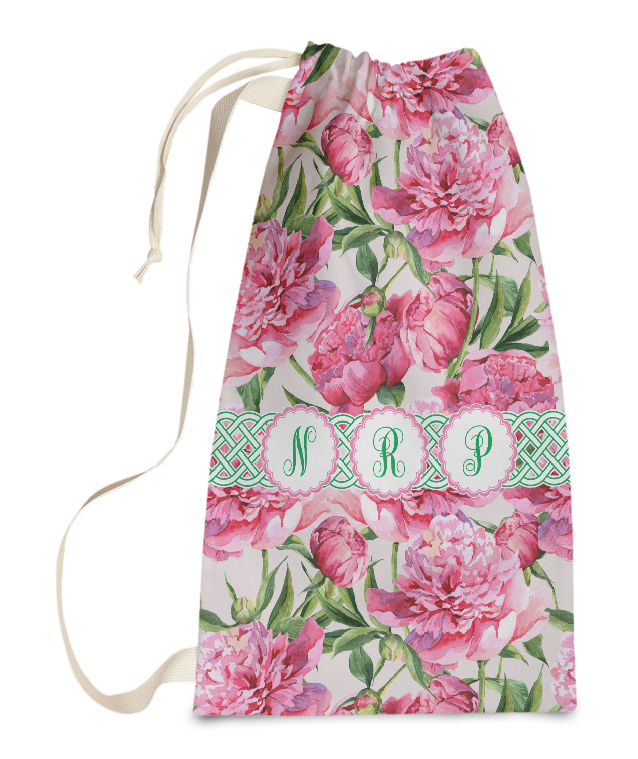 Carry your laundry in style with these customized laundry bags. Available in two sizes, featuring a natural colored woven strap and a cinch cord, these bags hold a lot of clothes or anything else you want to fit in them.