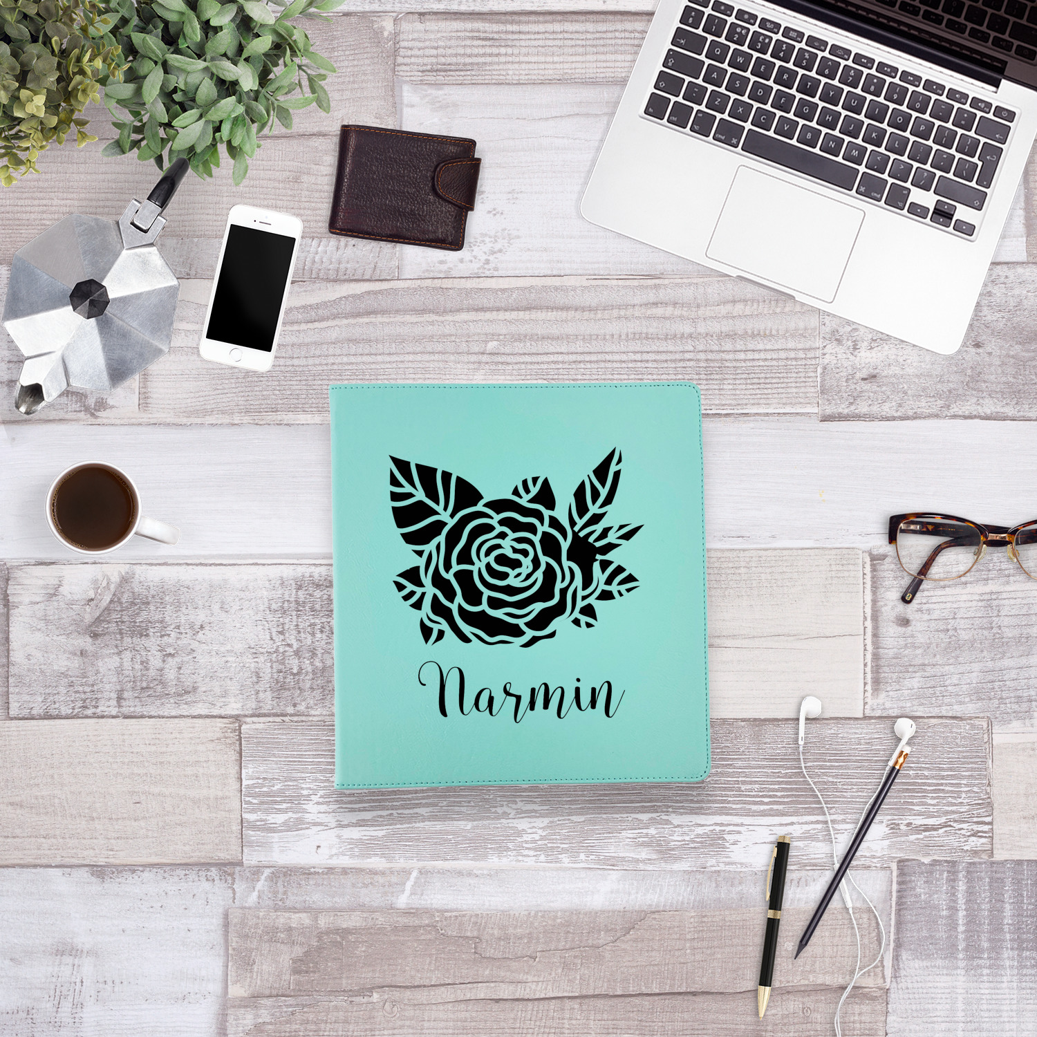 Made from a high quality faux leather covering, these binders are laser engrave with your choice of personalization. The 1" d-rings inside hold up to 175 sheets of standard 8.5" x 11" US Letter or notebook paper or 8.27" x 11.69" A4 size paper.