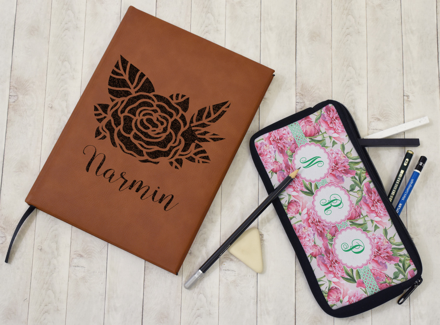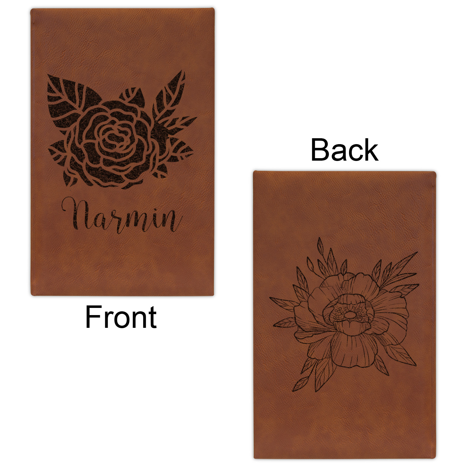 The faux leather covers are a rich cognac / rawhide color and can be customized with your design. From a simple name or monogram or a logo to a detailed mandala - the choice for customization & personalization is truly yours. Customize one of our designs or upload your own.