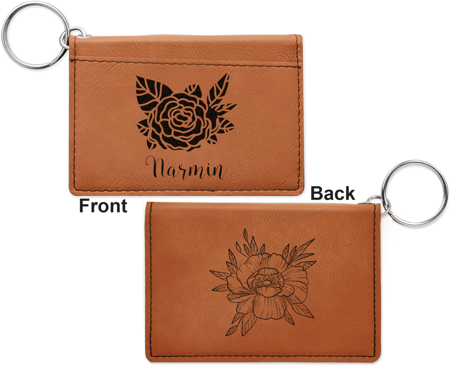 Interested in more leatherette or leather accessories? Check out our Apparel and Accessories department, where you can also personalize our phone wallets and money clips. If you're looking for customizable keychains to add to your keyring card holder, have a look at our round, heart, and diamond keychains. These keychains and more can be found in our Car and Automotive category.