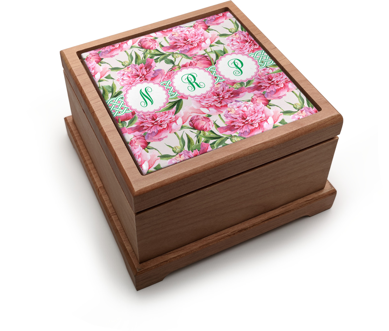 We chose to personalize it with Celtic ribbon and triple scallop labels with initials in each one of the labels. The coordinating design is also stunning with stripes of pink on the bottom.