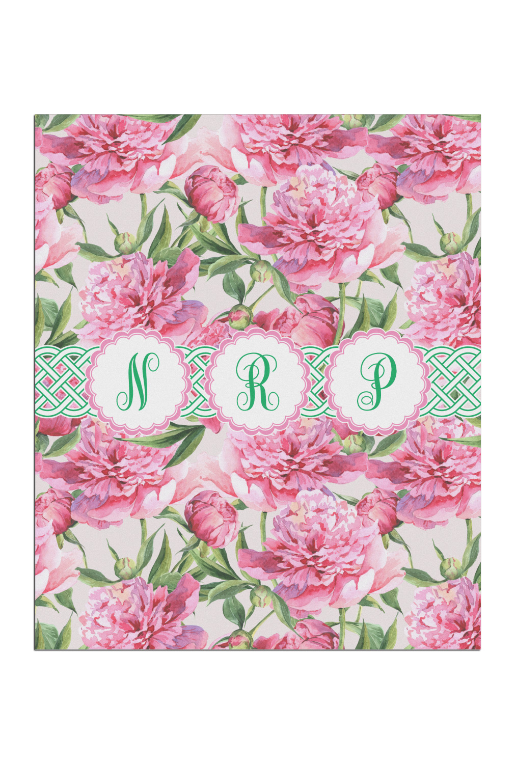 We chose to personalize it with Celtic ribbon and triple scallop labels with initials in each one of the labels. The coordinating design is also stunning with stripes of pink on the bottom.