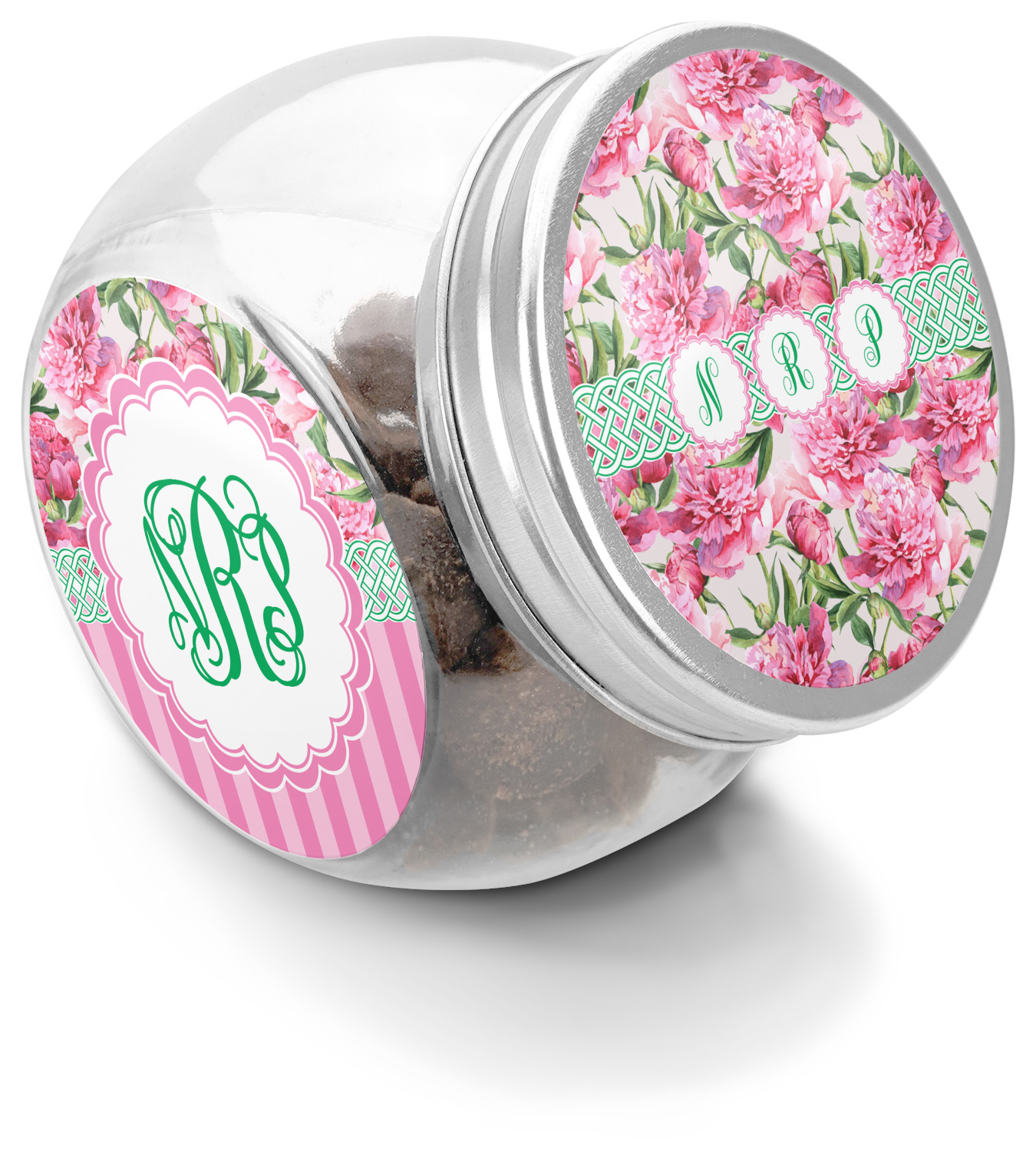 This treat jar is an excellent way to store treats for your favorite canine or feline. Moreover, their delicate, classy appearance makes them a tasteful addition to your countertop's décor. Crafted from clear glass, its unique construction and silver metal, screw-on lid allows for quick and easy access. Three, permanent, vinyl stickers are applied to both sides of the jar and lid, presenting your personalized design. The base of this glass, dog treat jar is 3.4" x 4.75", and the jar stands at 5" tall. Though on the smaller side, this jar is best suited for smaller treats or training treats.