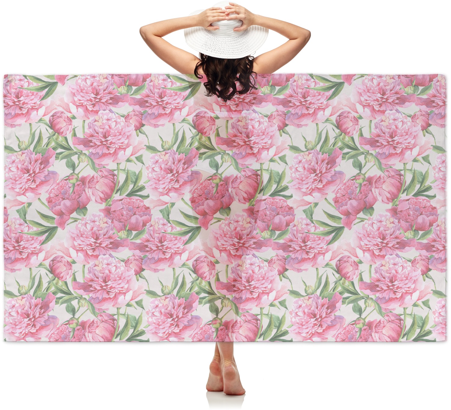 This sarong is 42" x 70" of personalized beauty. It is made of a soft polyester for comfort when against your skin. The material is sheer, so it serves well as a swimsuit cover-up or a shawl. There are so many uses for this wonderful product that you will be sure to find when it is in your hands.