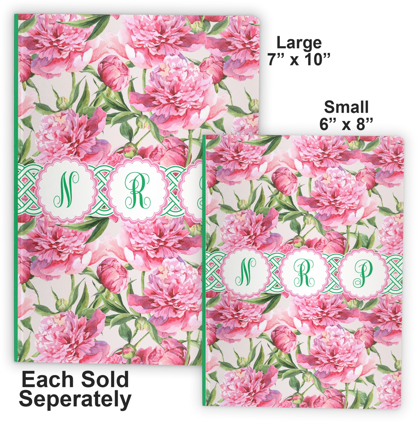 We offer these notebooks in two different sizes. The small notebook is 8" x 5.75", and fits snugly in purses or totes. The large notebook measures at 10" x 7.25", and can be carried in briefcases and backpacks.