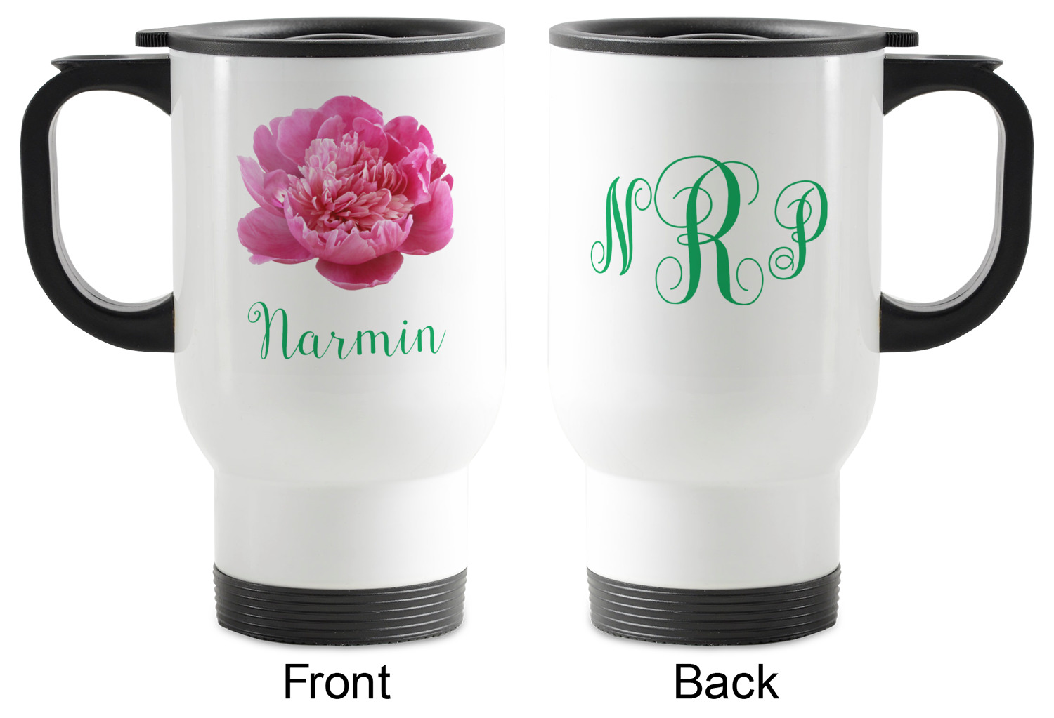 Now design it! The front and back will be printed with your choice of a graphic, text, or both! The majority of the cup will be white with your graphics proudly displayed on the front and back.