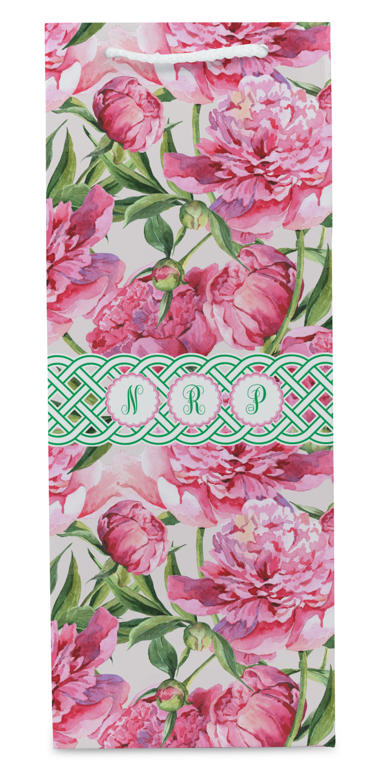 Our wine bags are printed on premium paper. The bags are then cut, scored and folded. The handles and cardstock base it attached. These custom wine bags are printed and made in the USA.