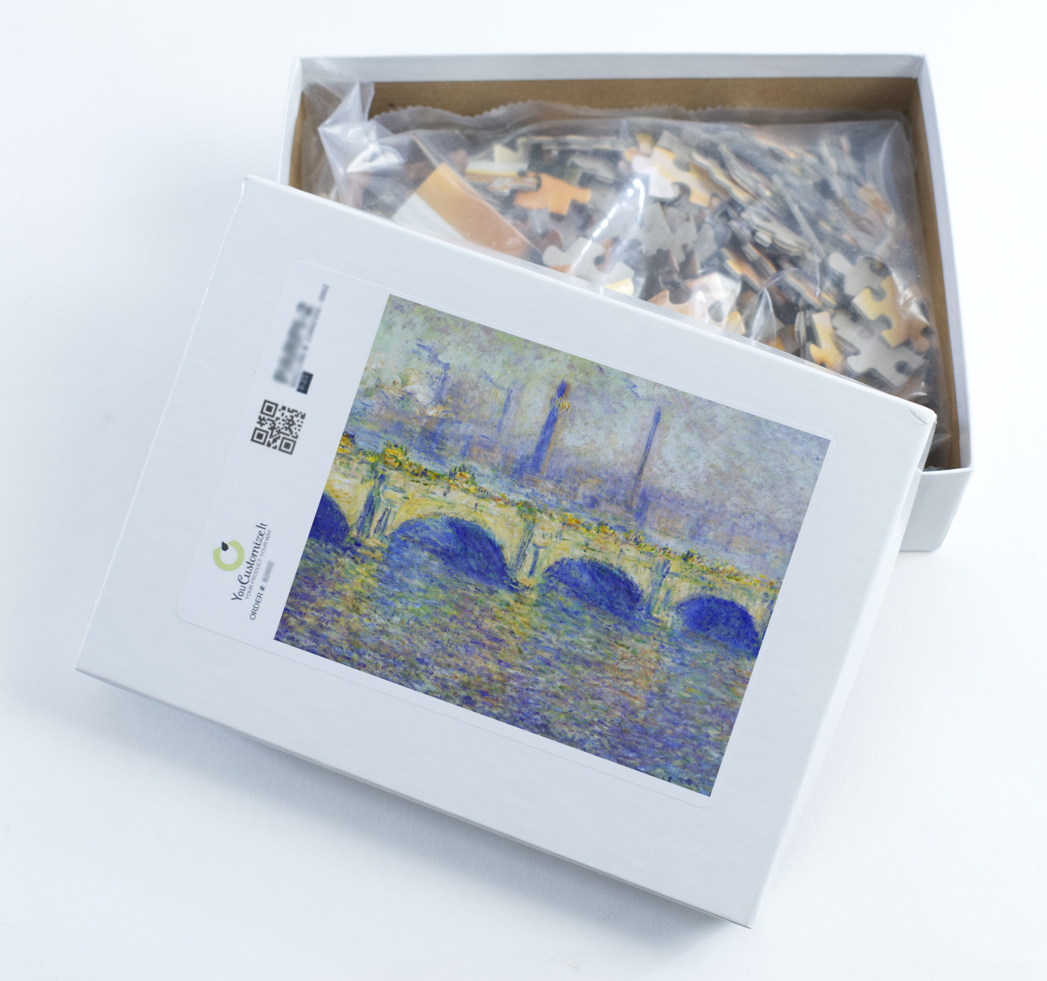 We print our puzzles on thick white chipboard in vibrant colors, then laminate the chipboard and die cut your puzzle. Your jigsaw puzzle is shipped to you in a box with the image of the puzzle on the box.