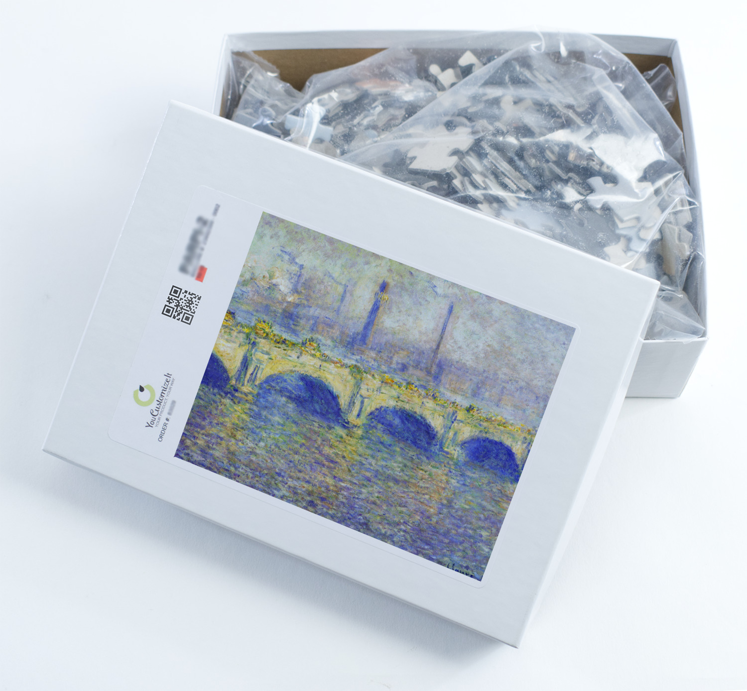 We print our puzzles on thick white chipboard in vibrant colors, then laminate the chipboard and die cut your puzzle. Your jigsaw puzzle is shipped to you in a box with the image of the puzzle on the box.