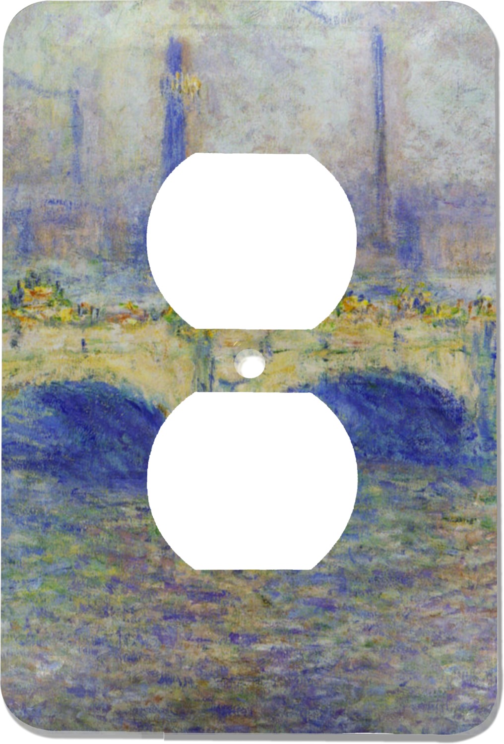 These outlet covers are made from a sturdy metal and display your design across its face. A satin finish coats the design to give it a finished look. The center of this outlet plate cover has a small hole to accommodate a screw upon installation. With your purchase of this decorative outlet cover, we include one screw. This outlet plate is of a standard size, and measures at approximately 3.5 by 5 inches.