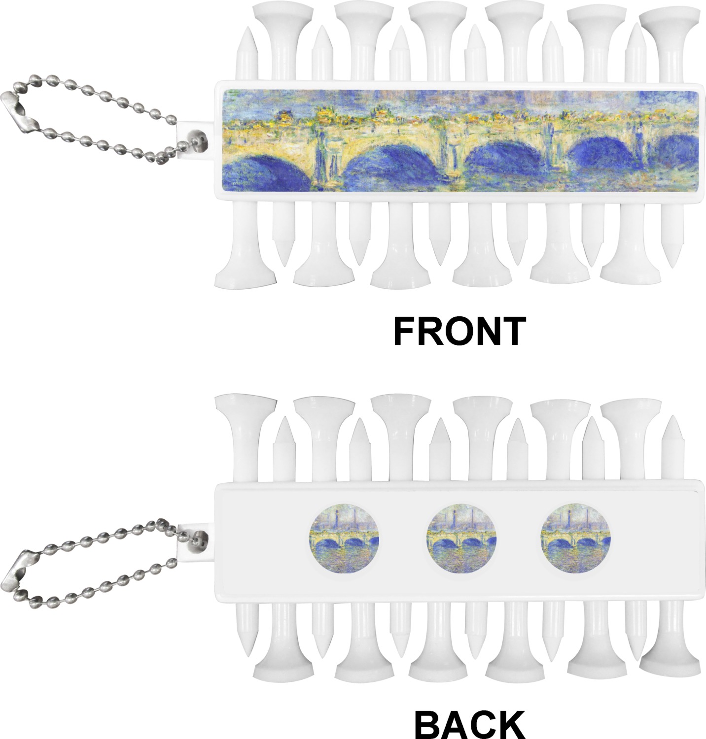 With 12 tees on a lightweight, portable key chain, it almost ensures a great 18 holes. Our tees are made of white plastic and are a little over 2". Design the front and the back of the golf tee holder. Pick from over a hundred designs, colors, and personalization styles! The set even comes with three removable ball markers as well!