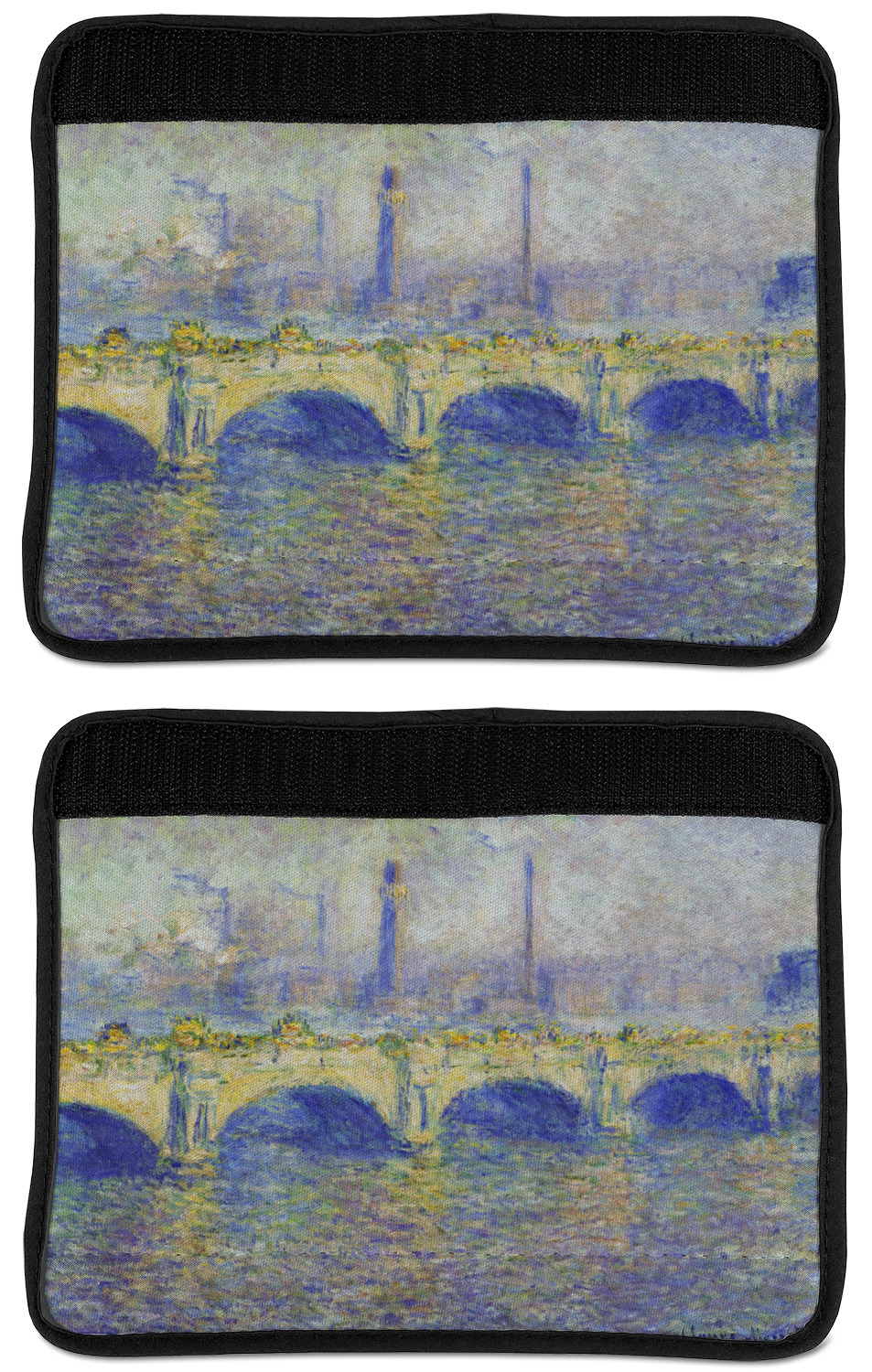 Made from neoprene, our seat belt strap covers wrap around the belt itself and have a Velcro tab for easy attachment and closure. The belt's edges are trimmed with a black polyester for a secure finish. Each cover is 9.5 by 7 inches when open and 9.5 by 2.5 inches when closed. We print your personalized design on the face of the seat belt pad.