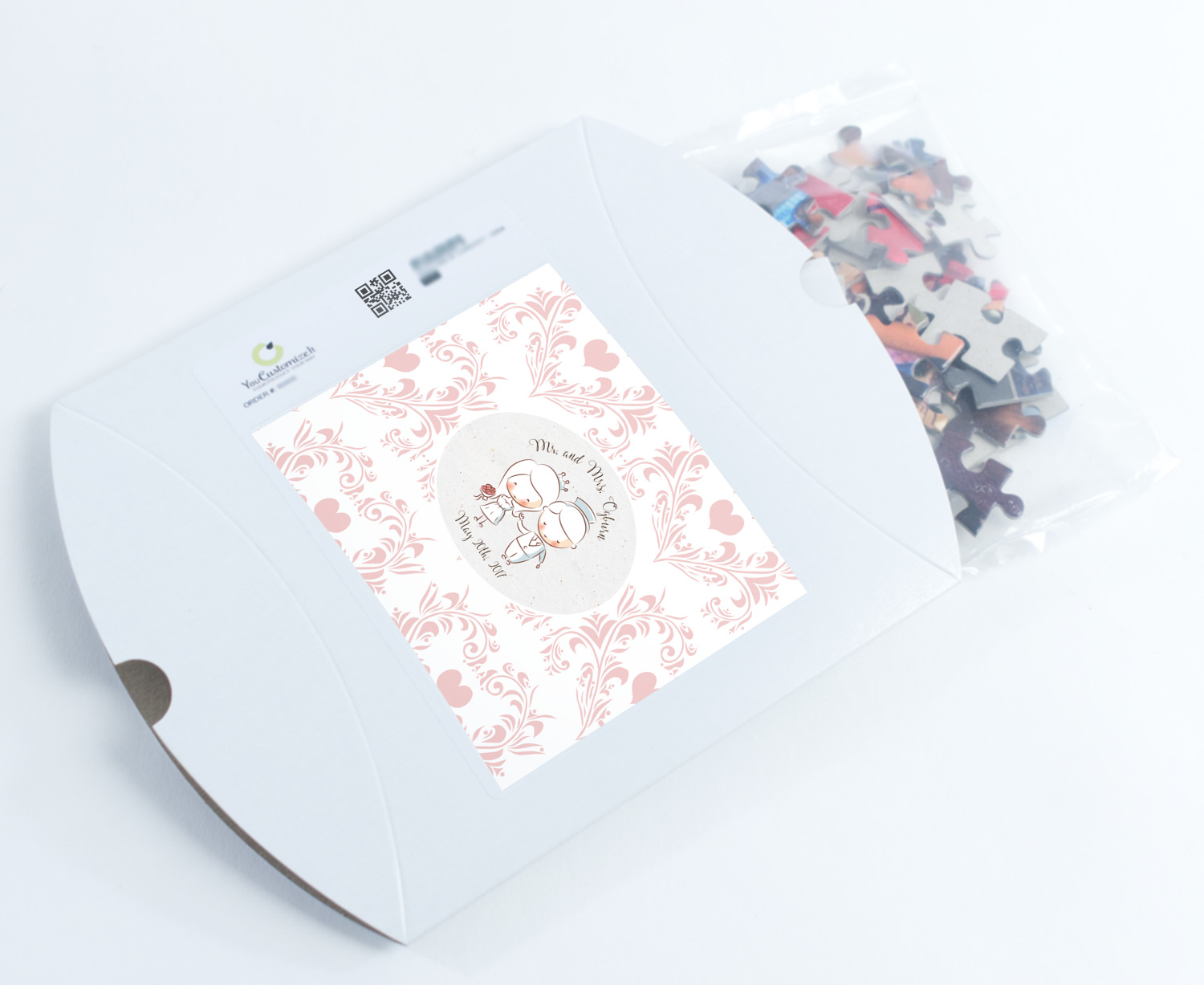 Depending on the look you are trying to achieve, you can add; a thematic pattern or background, with a photo in a frame and text or personalization to your puzzle. Basically if you can imagine it, you can design it!