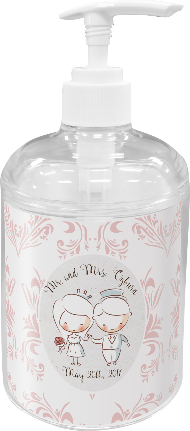 These lotion dispensers are crafted from sturdy acrylic and will withstand daily use. Each soap dispenser pump has a screw-off lid that allows you to easily fill the bottle with any soap or lotion of your choice. The bottle itself features 3 different pieces: a base, a liquid holding container, and a pump. The included pump is durable, ideal for controlled dispensing, and swivels for your convenience. Each of these soap pumps holds 9 ounces of liquid and measures about 2.75 by 2.75 by 6 inches. Your customization is displayed across fine-quality vinyl inserts.