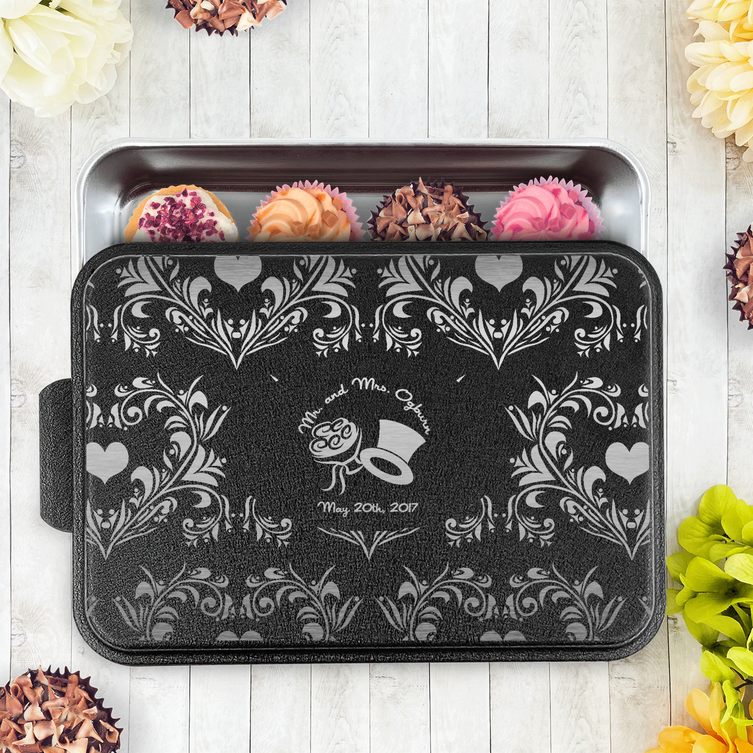 With the lid laser etched with the design of your choice these get the fully customized touch unique to you. The possibilities are endless when you go to design your own cake pan lid. With our design library you can make the design of your dreams come true.