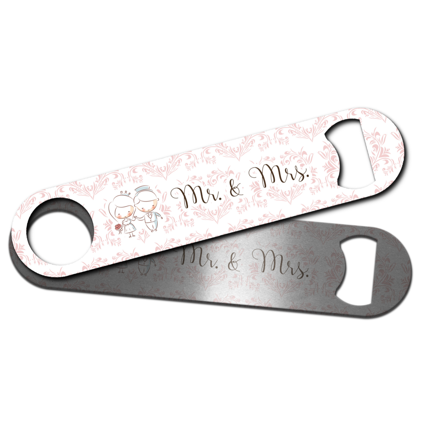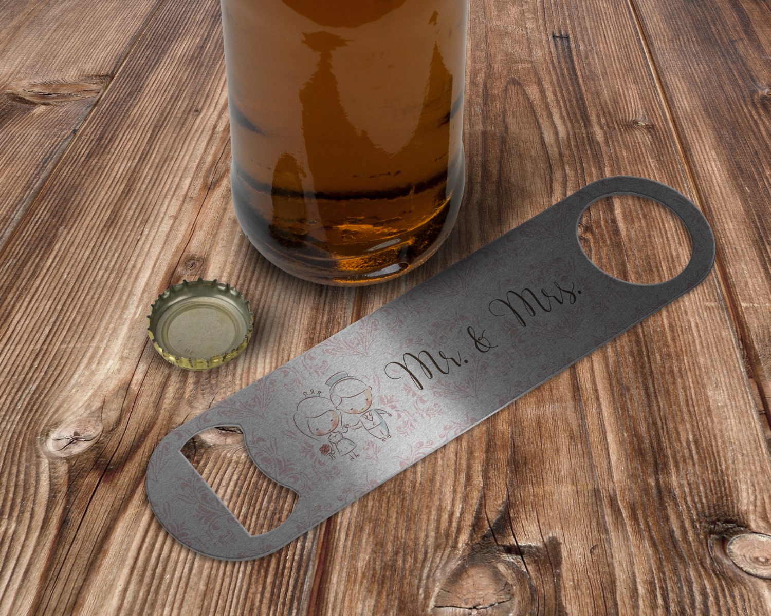 Stop struggling with the caps or your bottled beverages by purchasing one of our personalized bottle openers! These wrench-like custom bar blades are built to last. Customize one for your home's bar, or as a practical gift for a loved one!