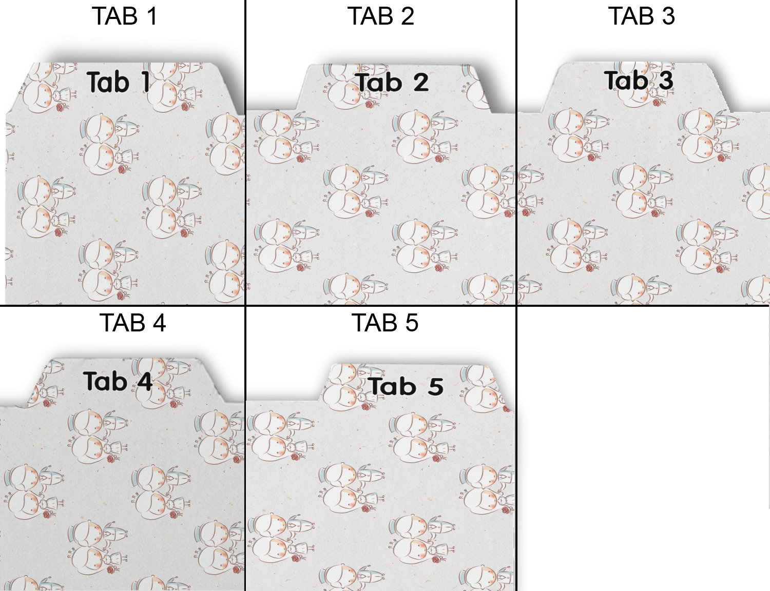 Made from a durable heavy weight card stock, these page dividers are printed on one side with your custom design. Customize the title on each tab as well as the background on each divider to make them unique to you. The possibilities are endless!