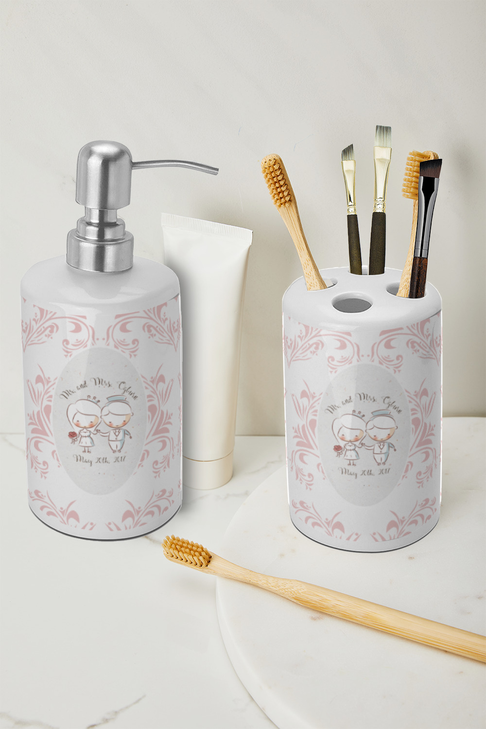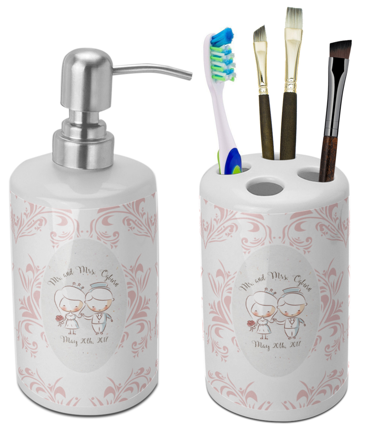 | Product Dimensions | Ceramic Soap / Lotion Dispenser (4" x 3" x 7") Ceramic Toothbrush Holder (3" x 3" x 4.5") |