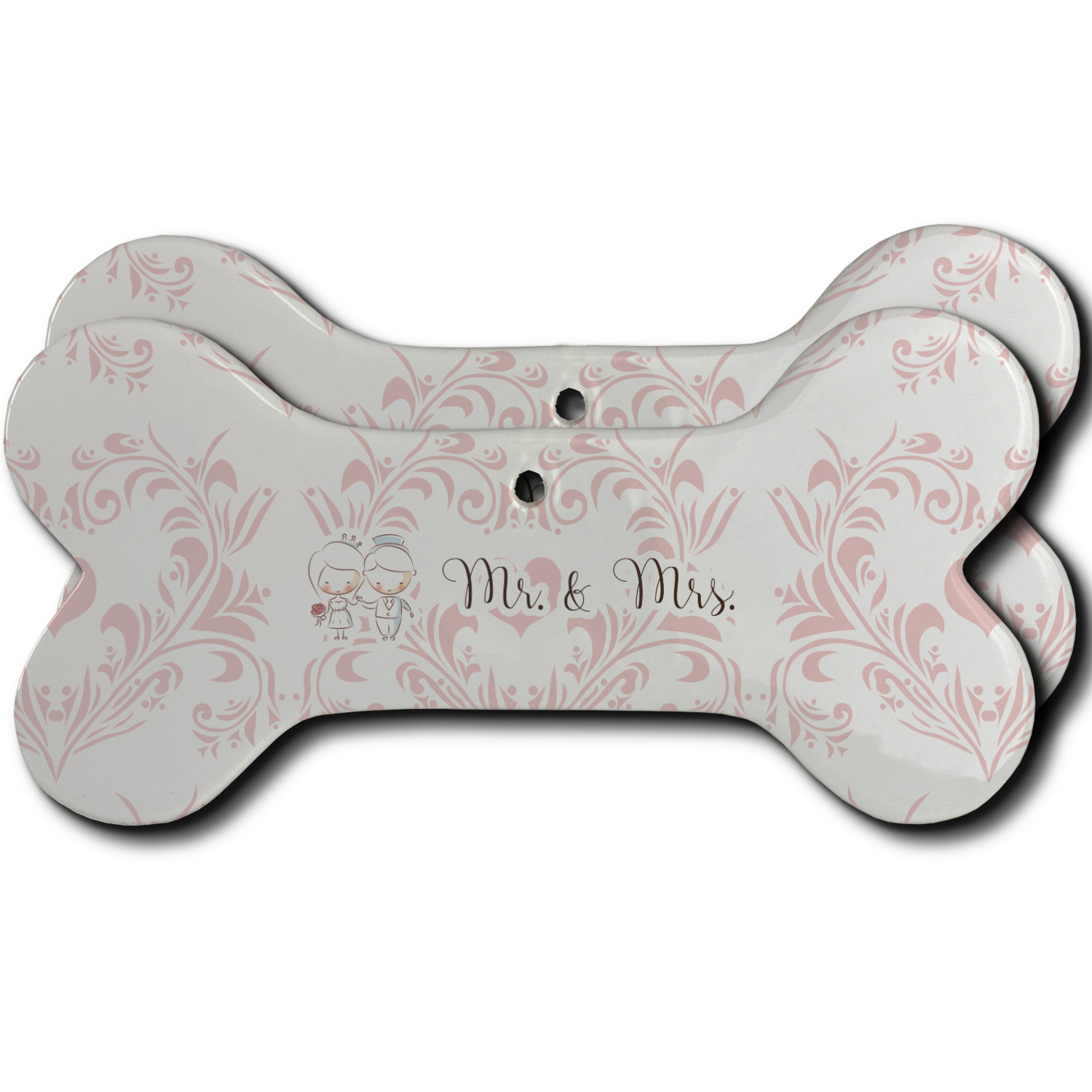 Our dog Christmas ornaments are a ceramic material with a bone-shaped structure hung horizontally. We offer two printing styles to personalize your furry friend's ornament! Choose a one-sided printing, perfect for wall decor, memorial accessory, or doghouse nameplate! Create a double-sided ornament perfect for adorning the Christmas tree. Each dog bone ornament is approximately 4.75" x 2.25" and is printed here in the USA.
