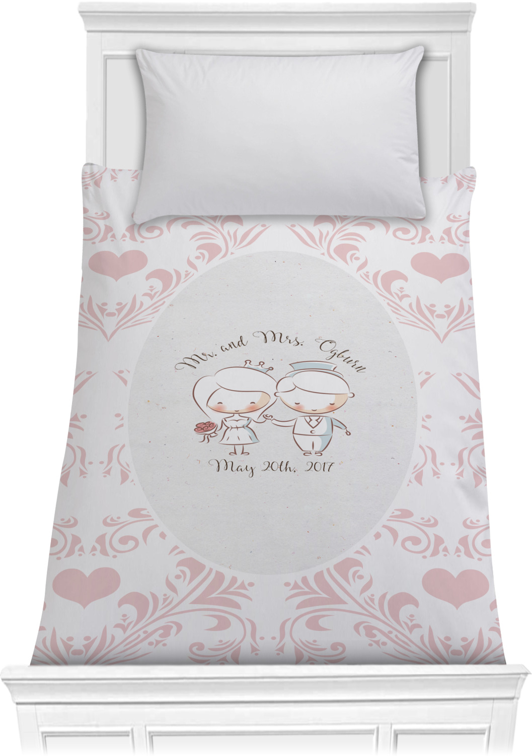 We have hundreds of different design templates for you to choose from Each design can be customized to your exact specifications. Not only can you customize the comforter, but you can also customize each pillow sham e.g. for a queen comforter set you have have Mr & Mrs pillow shams with the last name on comforter.