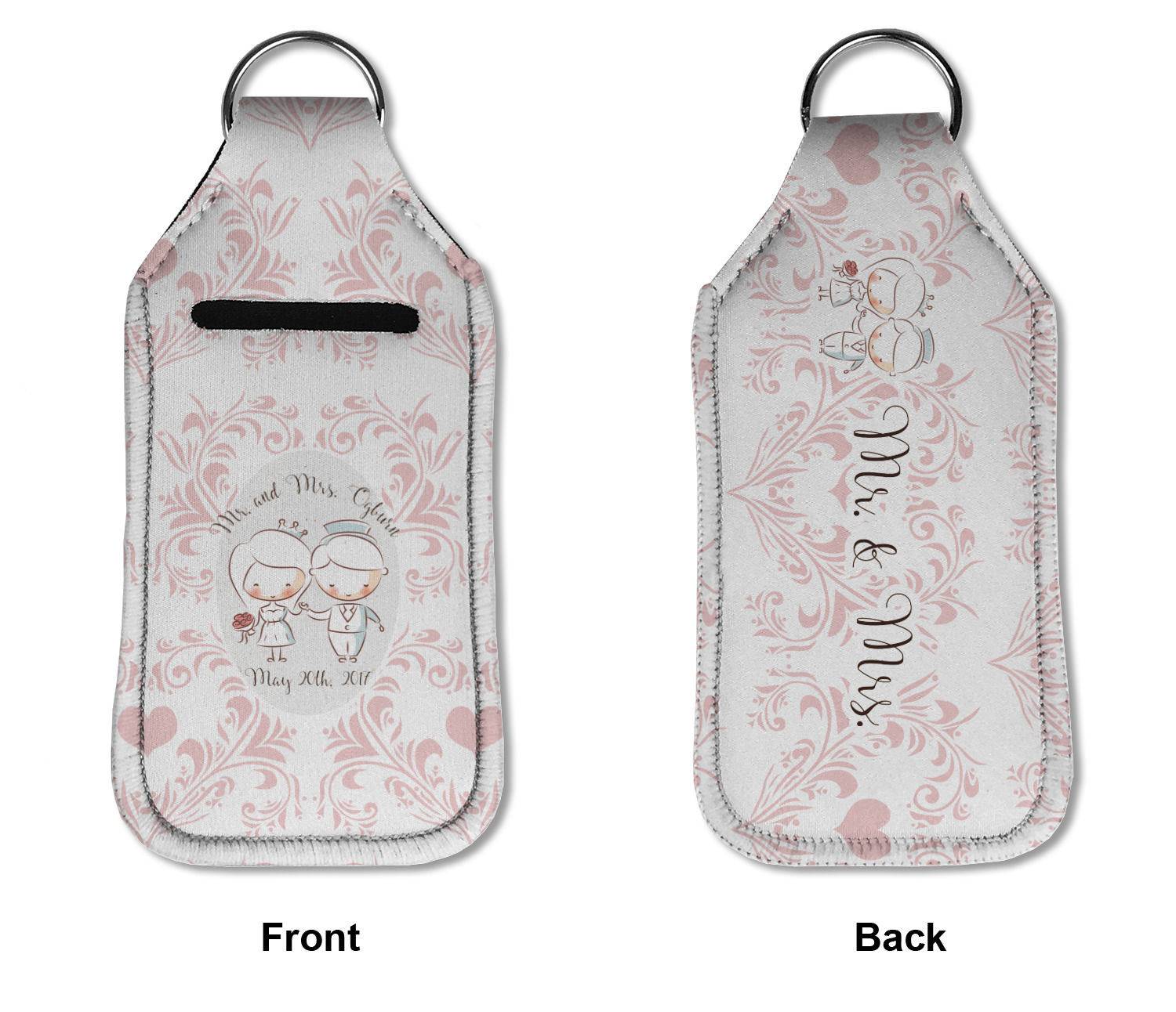 Each hand sanitizer holder comes with its own empty travel-sized, refillable hand sanitizer sure to fit snug in your customized sanitizer case! Our hand sanitizer cases are a durable, yet soft neoprene material sure to last any daily activities or travel agenda. Customize and personalize a hand sanitizer bottle holder with one of our two sizes - small (4.25" x 2.25") or large (5.5" x 2.5"). Each travel sanitizer holder comes with a keyring for attachment on bags, keys, or more!