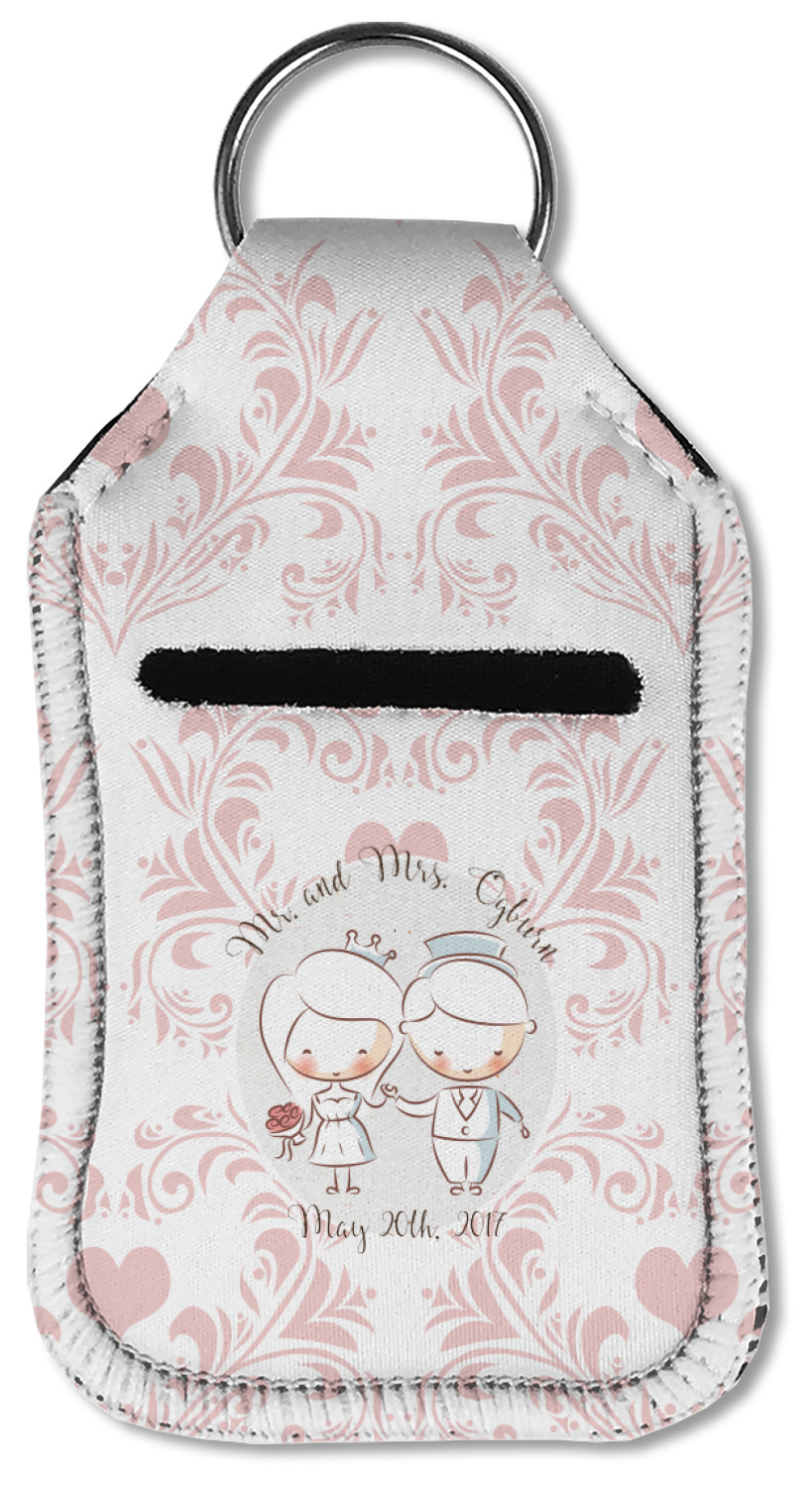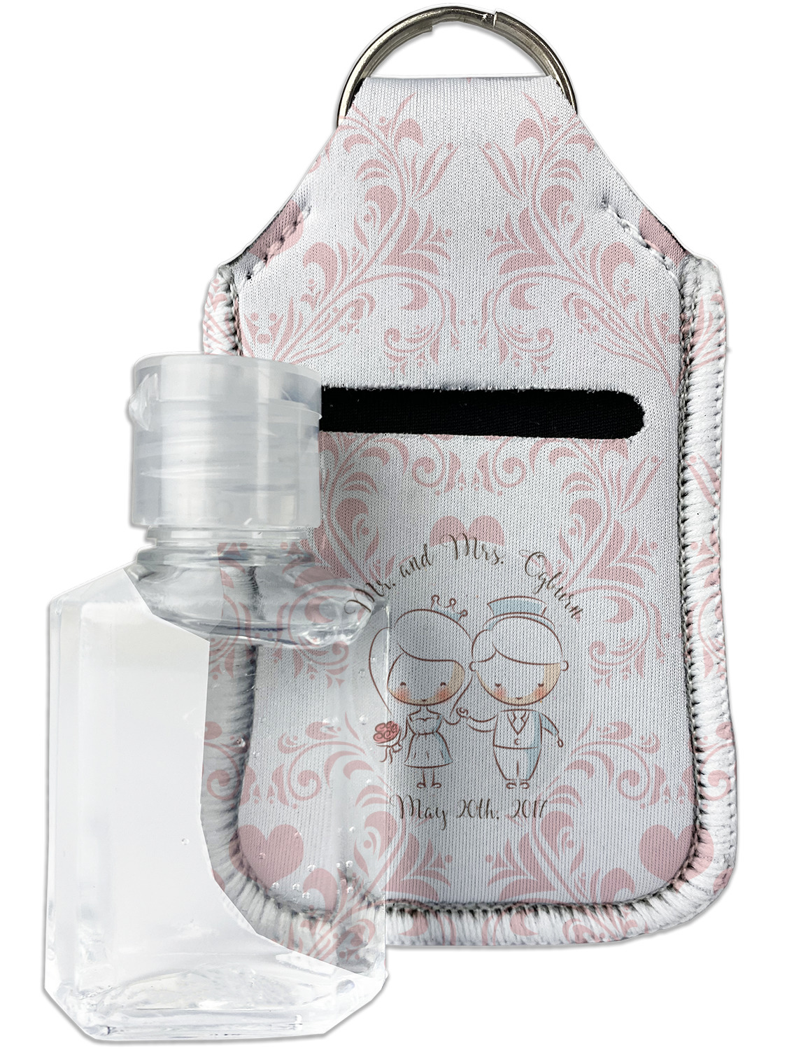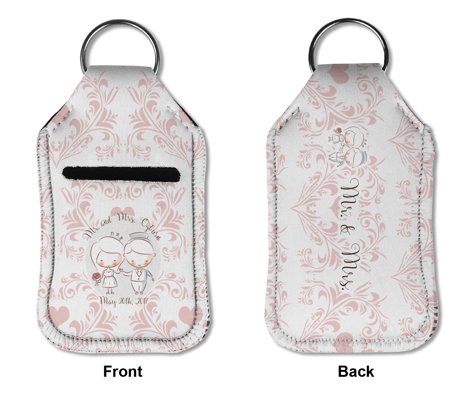 Each hand sanitizer holder comes with its own empty travel-sized, refillable hand sanitizer sure to fit snug in your customized sanitizer case! Our hand sanitizer cases are a durable, yet soft neoprene material sure to last any daily activities or travel agenda. Customize and personalize a hand sanitizer bottle holder with one of our two sizes - small (4.25" x 2.25") or large (5.5" x 2.5"). Each travel sanitizer holder comes with a keyring for attachment on bags, keys, or more!