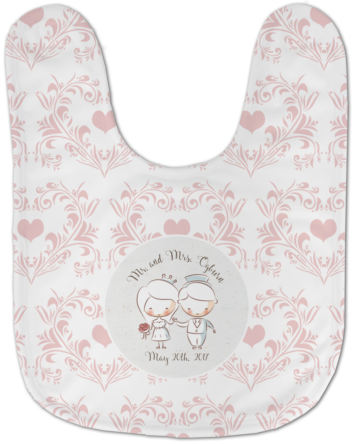 Made of soft polyester, each customizable bib hugs comfortably around the neck to catch every drip and drool. Each bib design is printed with baby-safe ink and finished with a secure stitch pattern and velcro clasp. We carry two customizable bib styles -Microfiber Velour and Jersey Knit.