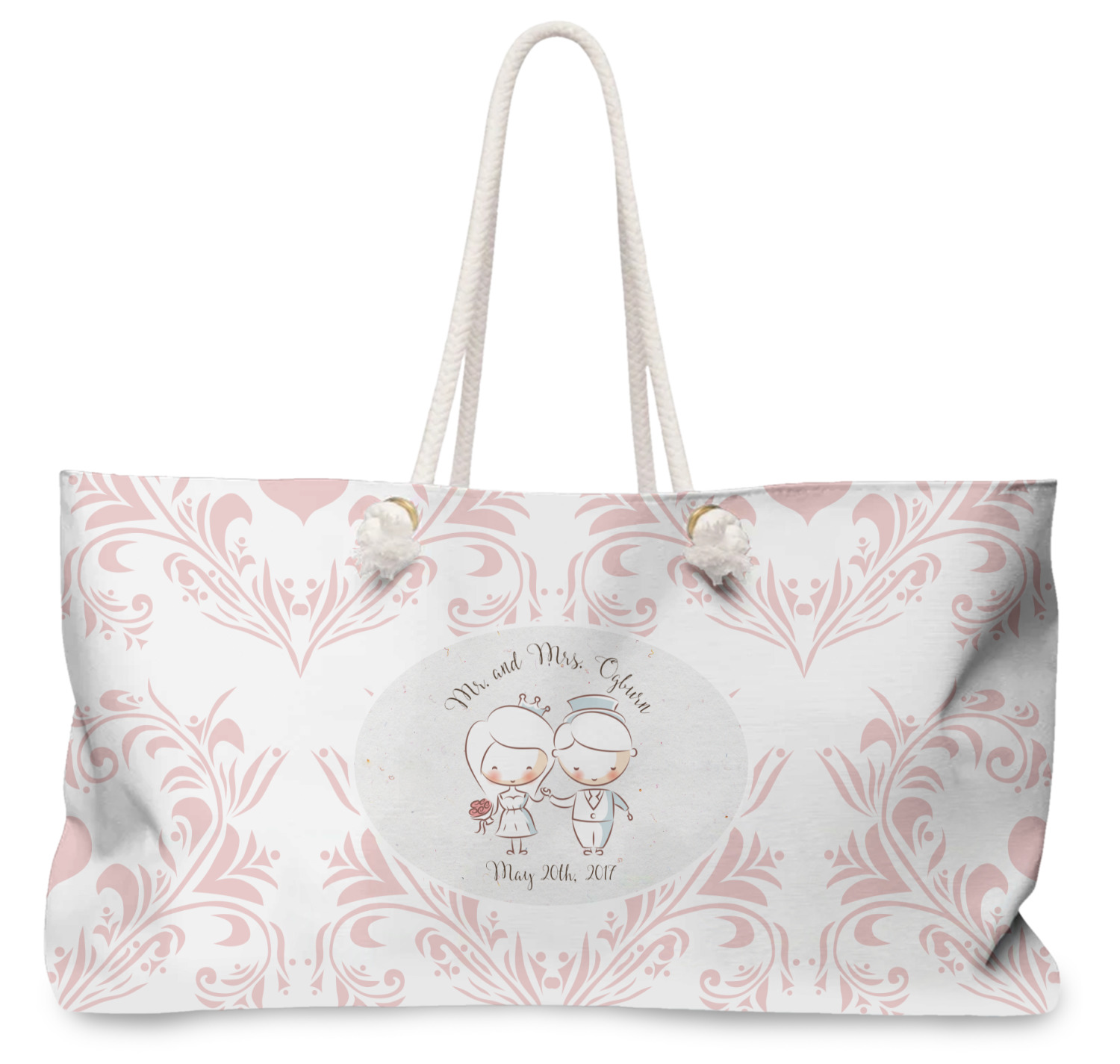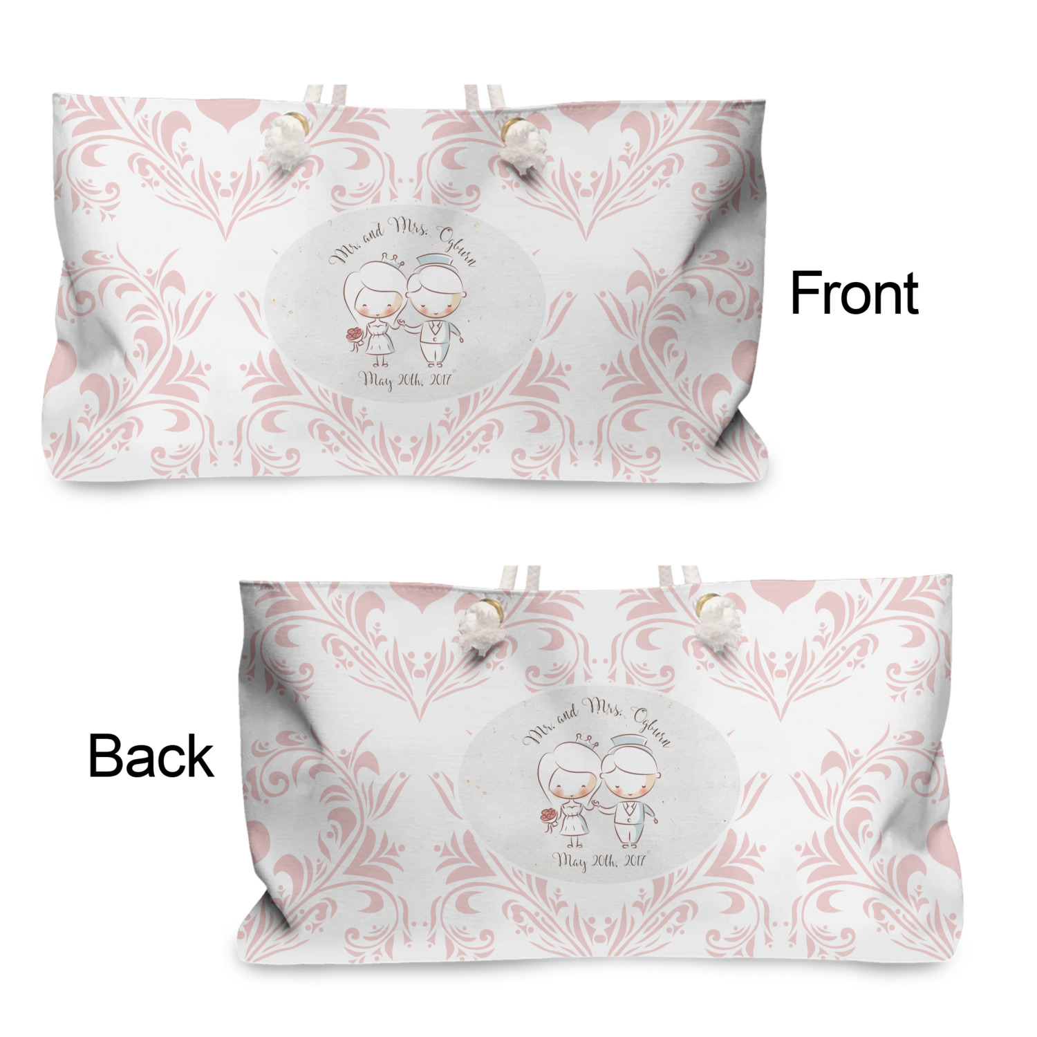 These weekender totes can be customized front and back. The totes are full all over print - so the choice of how background are endless - from beautiful floral or leaf patterns to geometrics or some classic Van Gogh artwork - the possibilities are endless. The totes can also be decorated with photos and logos.