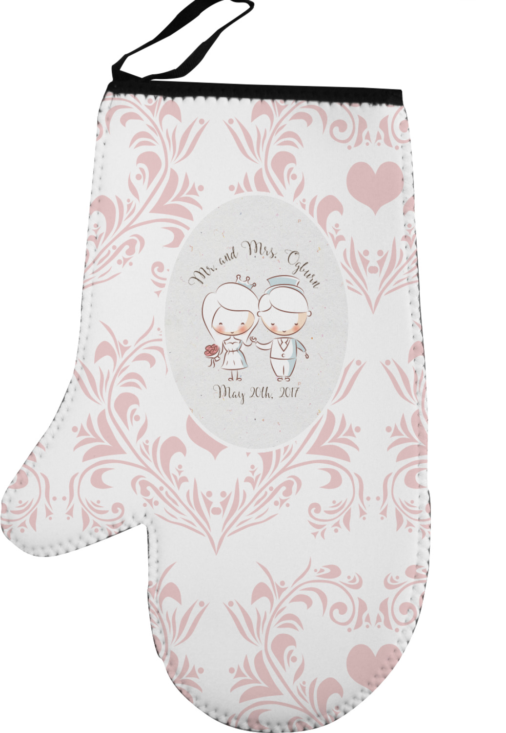 Our oven mitt gloves are made from a durable neoprene and feature a textured, rubberized surface on the palm's side for an easy grip. A strong stitch connects the neoprene and rubber, increasing the durability of this mitt. These oven gloves are spacious, and can accommodate both small and large hands. A thin, black loop is attached to the mitt's top, which can be used to hang and store the mitt. Your customization is displayed across the entire front of the neoprene surface. We sell both left and right hand models of these, separately.