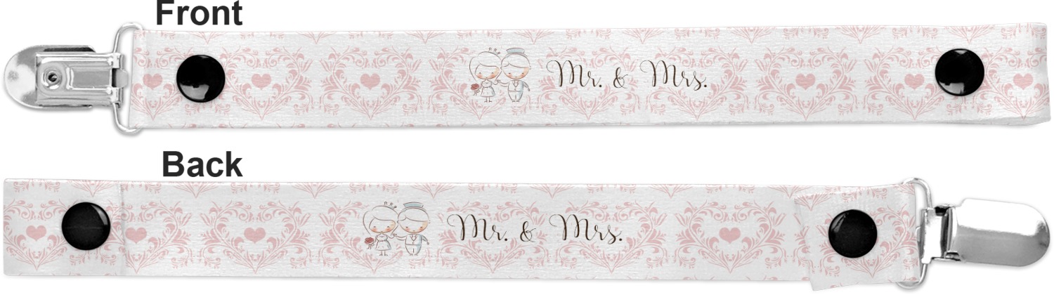 This personalized pacifier clip is the ideal size and measures at approximately 7.5 inches in length, when either end is snapped closed. On one end, you'll find a snap button. This button of your baby's pacifier holder is what can be attached to their pacifier to hold is securely in place. Simply open the snap, slip it through the pacifier opening, and snap it back into place. On the opposite end of this baby pacifier holder, you'll find a metal clip that can secure to a baby's collar or sleeve. This clip ensures that the strap stays in place, and that your baby's pacifier is always on hand.