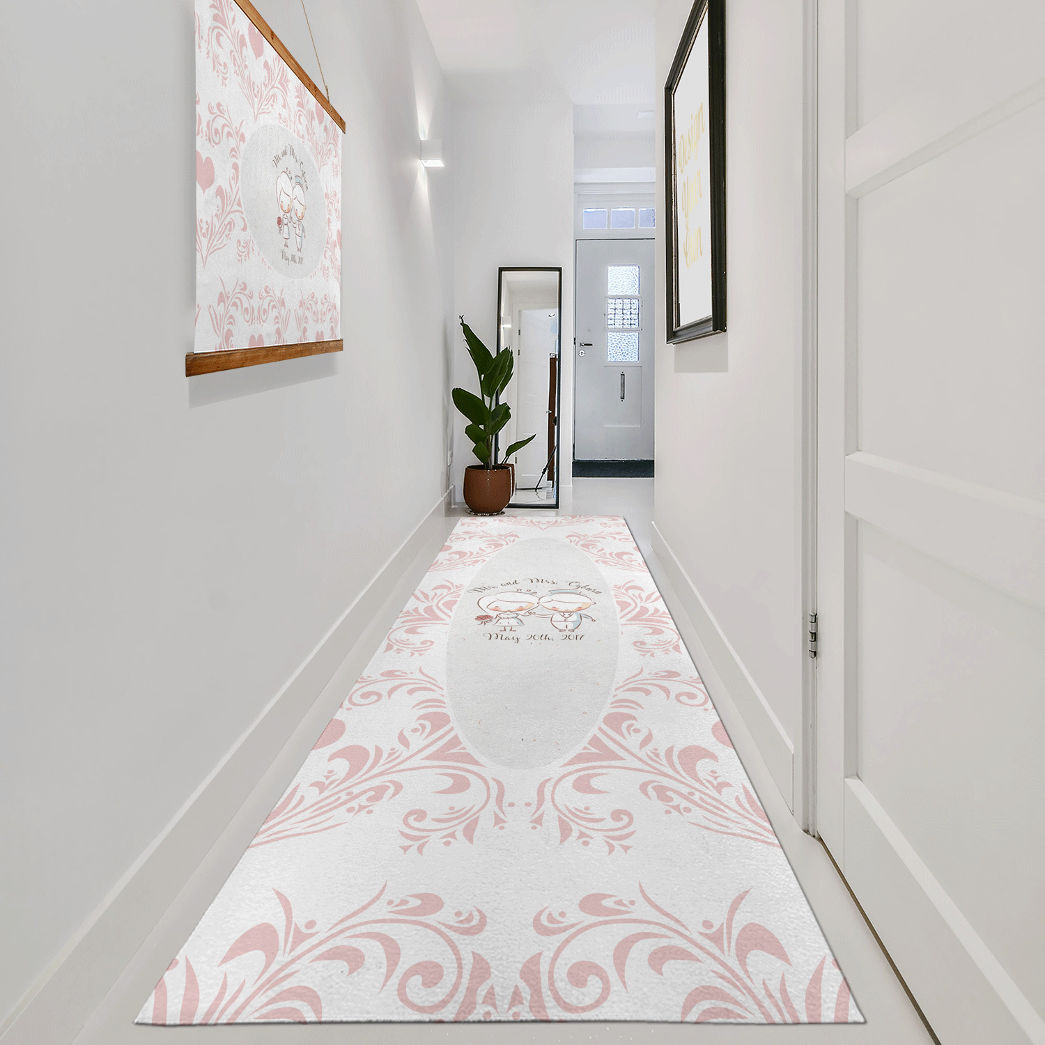 Our custom runner rugs and area rugsare both velvety soft and smooth, with a short pile, beautiful sewn corners and edges on the poly chenille face. We recommend adding an anti-slip mat under your runner rug to prevent it from sliding when under foot when placed on hard or smooth surfaces.