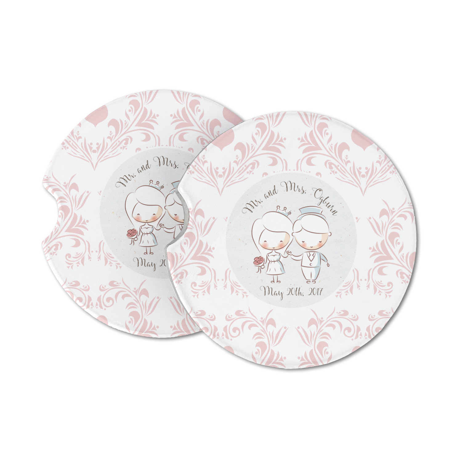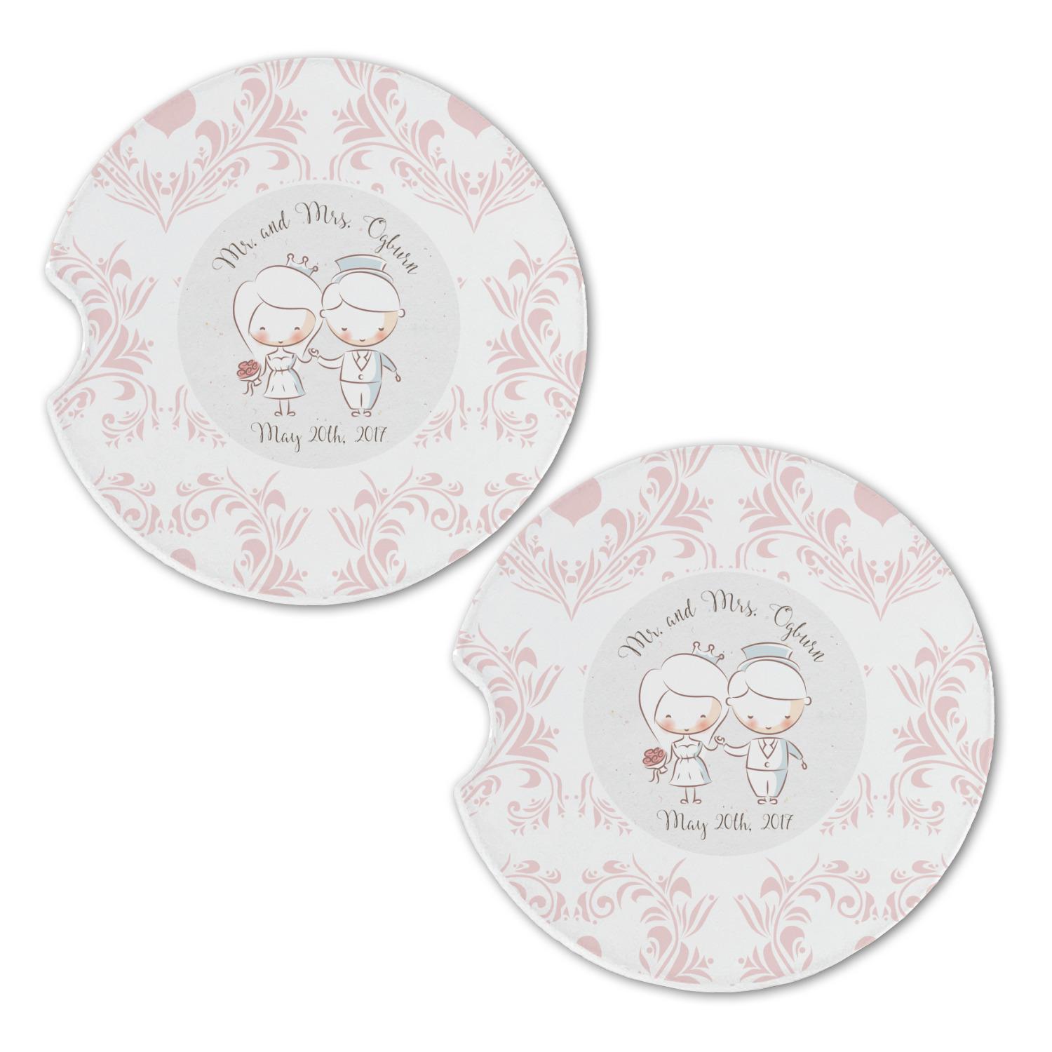 These sandstone coasters are round, robust, and feature a smoothed glossy side to exhibit your customized design. With a 2.5 inch diameter, these stone coasters will fit snugly inside most cup holders. This model also features a semi-circle shaped divot that allows for easy removal, despite the tight fit. You can purchase these car cup holder coasters in a pair, or singularly, depending on your needs.