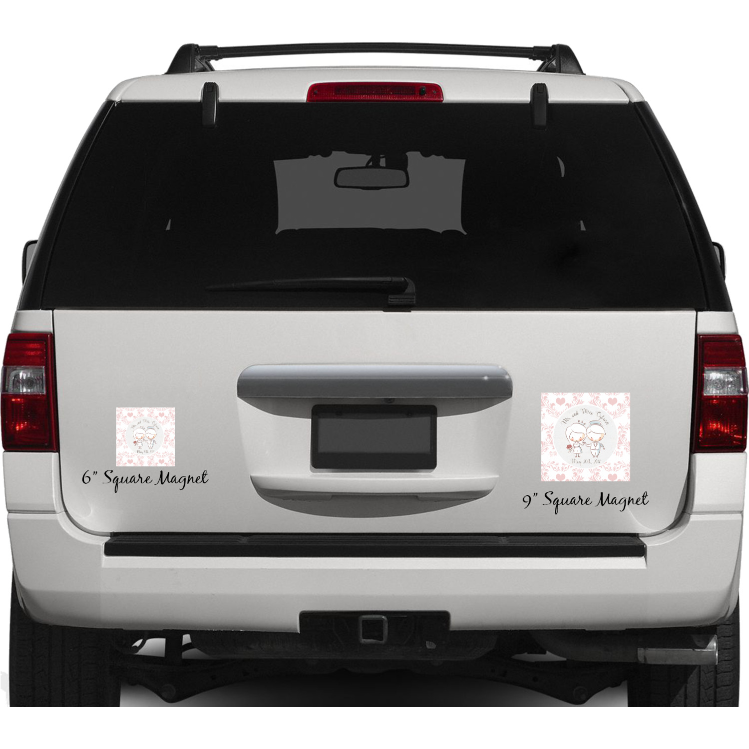 Your personalized car magnets are available for purchase in two shapes and two sizes. We carry round and square editions; each shape can either be 6 by 6 inches, or 10 by 10 inches, depending on your needs. Both versions are 1 millimeter thick, which is considered, within the industry, as the ideal thickness for automobile magnets. The magnetic car decals will adhere to any smooth, metal surface of your cars body, such as the trunk door or a side panel. However, please note that some vehicles are constructed from fiberglass bodies, which prevents the adhesion of anything magnetic. We advise that you test your vehicle before purchasing these magnets.