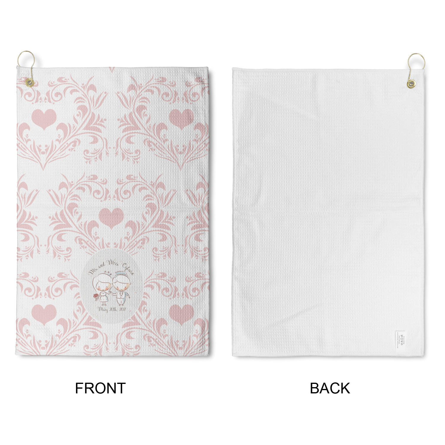Measuring approximately 16in wide and 24in tall these towels are the perfect size for your golf bag or on your cart. The waffle weave texture makes a great texture for cleaning clubs, balls and anything else you need to clean during your golf game.