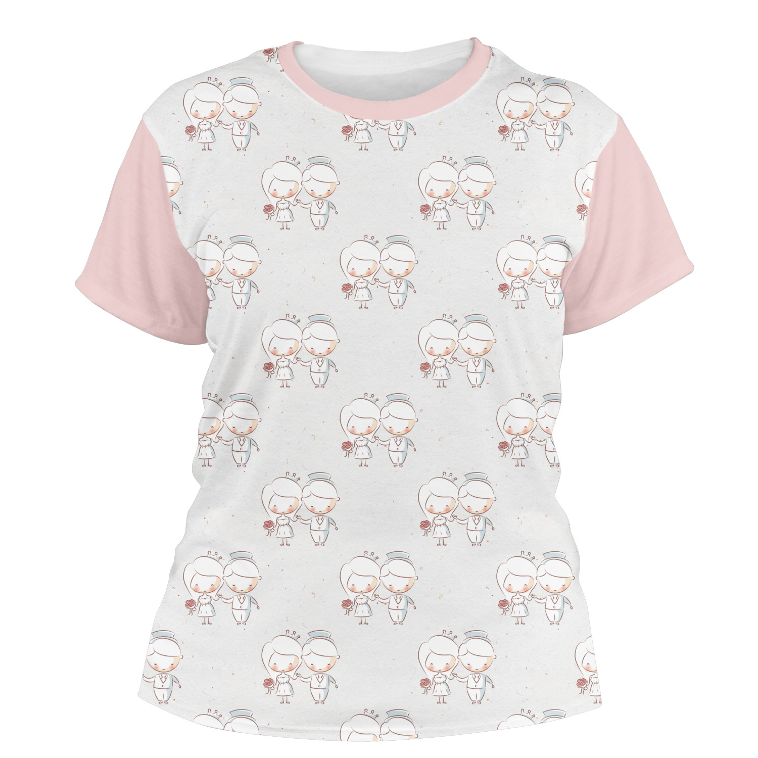 Our womens t-shirts are a lovely jersey knit polyester. They come in 6 different sizes ranging from X-Small to XX-Large. These shirts are your basic comfy crew neck t-shirts that look good on anyone. You are able to personalize the sleeves, front, AND back! Isn't that awesome?! Make everything one color or all different. The choice is yours.