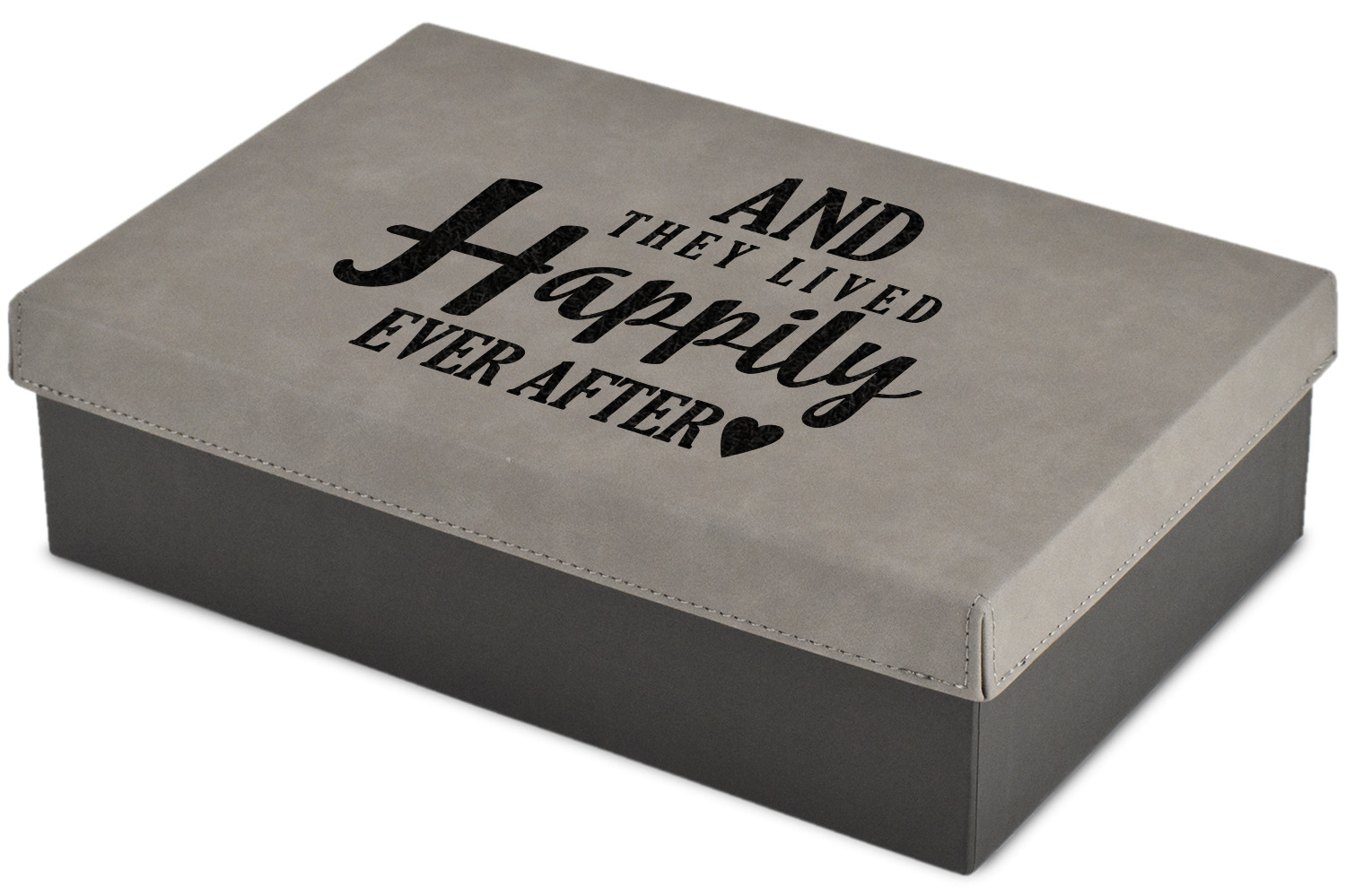 These gift boxes are available in 3 different sizes to accommodate various sized gifts. Available in gray as a neutral color for any occasion as well as to showcase your design boldly. Engraved with a laser this high quality paper board and faux leather gift box is unique and makes any gift stand out.