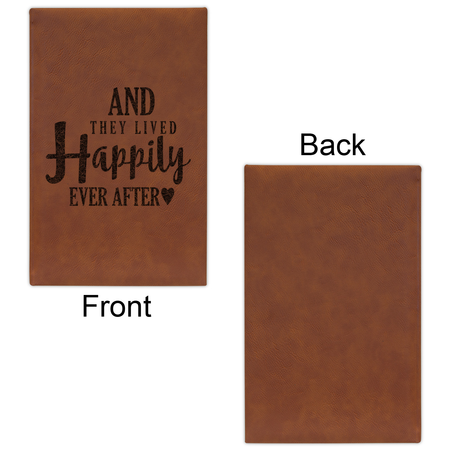The faux leather covers are a rich cognac / rawhide color and can be customized with your design. From a simple name or monogram or a logo to a detailed mandala - the choice for customization & personalization is truly yours. Customize one of our designs or upload your own.