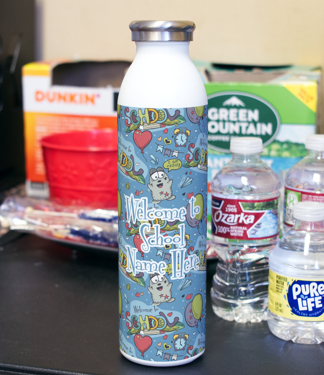 We have added the choice to personalize it with your school's name or any thing that you desire; however the choice is yours - simply remove the text if you do not want to personalize it