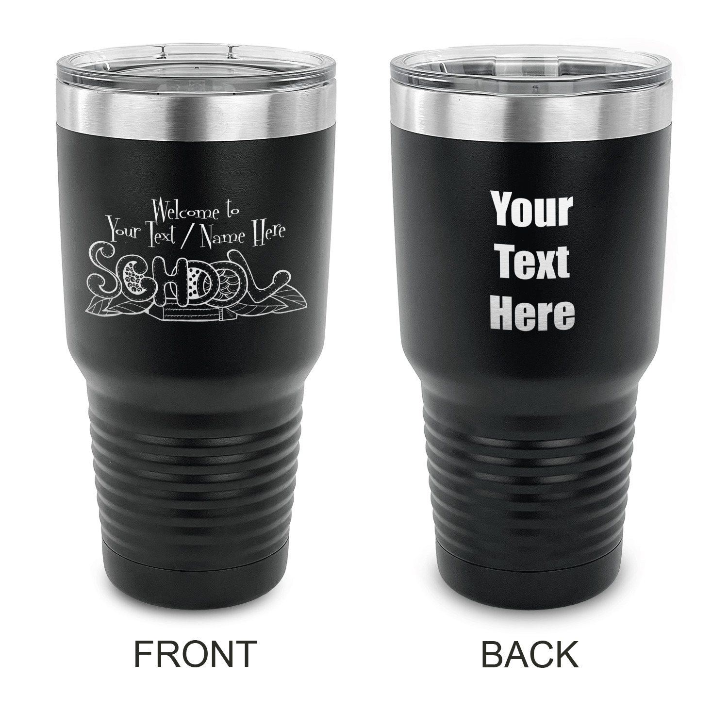 With the 5 colors - Black, Navy, Red, Pink and Coral, you are sure to find a cup to fit your personality. You can chose to engrave on the front or the front and back of the cup. Use our design studio to design your own cup and we laser engrave it for you.