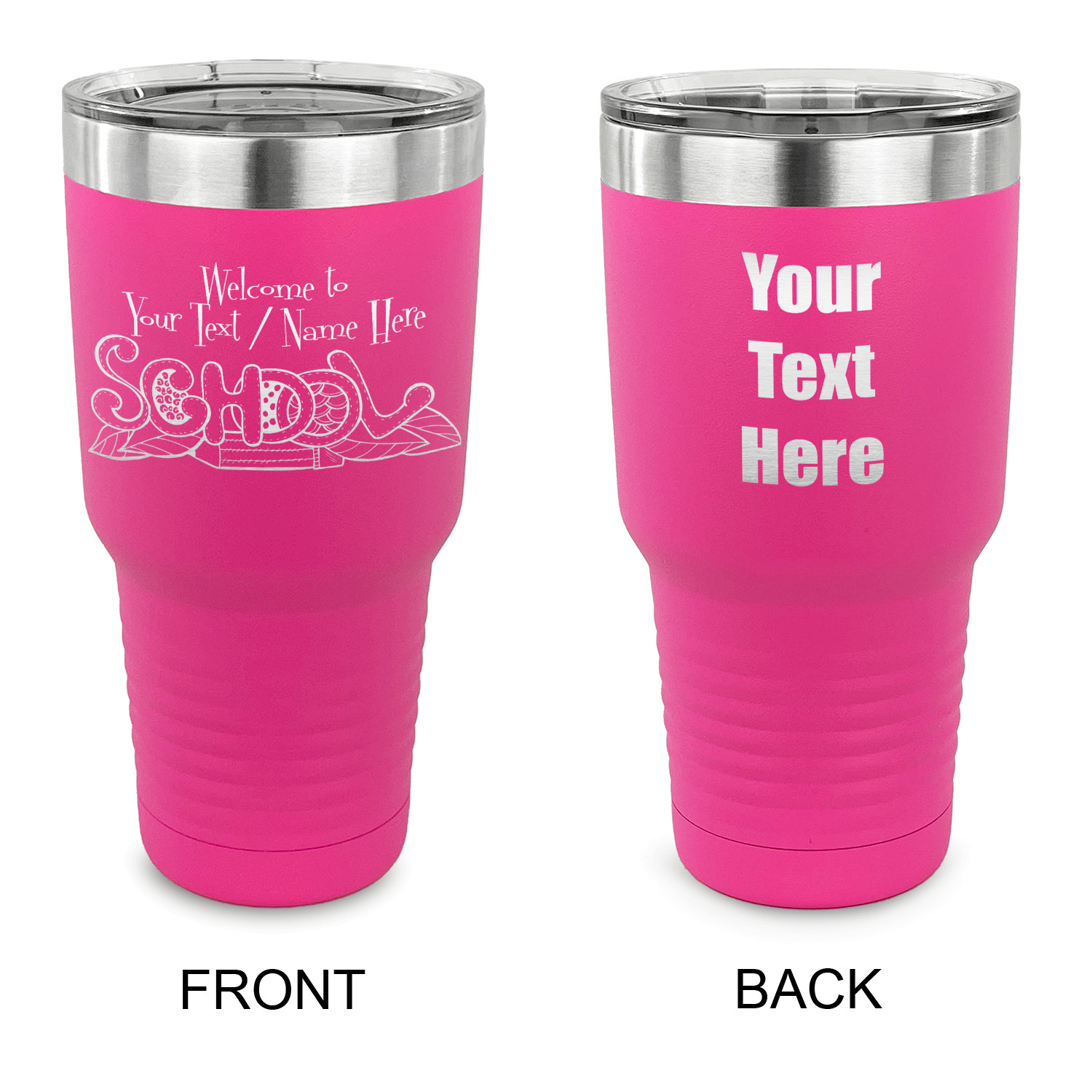 With the 5 colors - Black, Navy, Red, Pink and Coral, you are sure to find a cup to fit your personality. You can chose to engrave on the front or the front and back of the cup. Use our design studio to design your own cup and we laser engrave it for you.