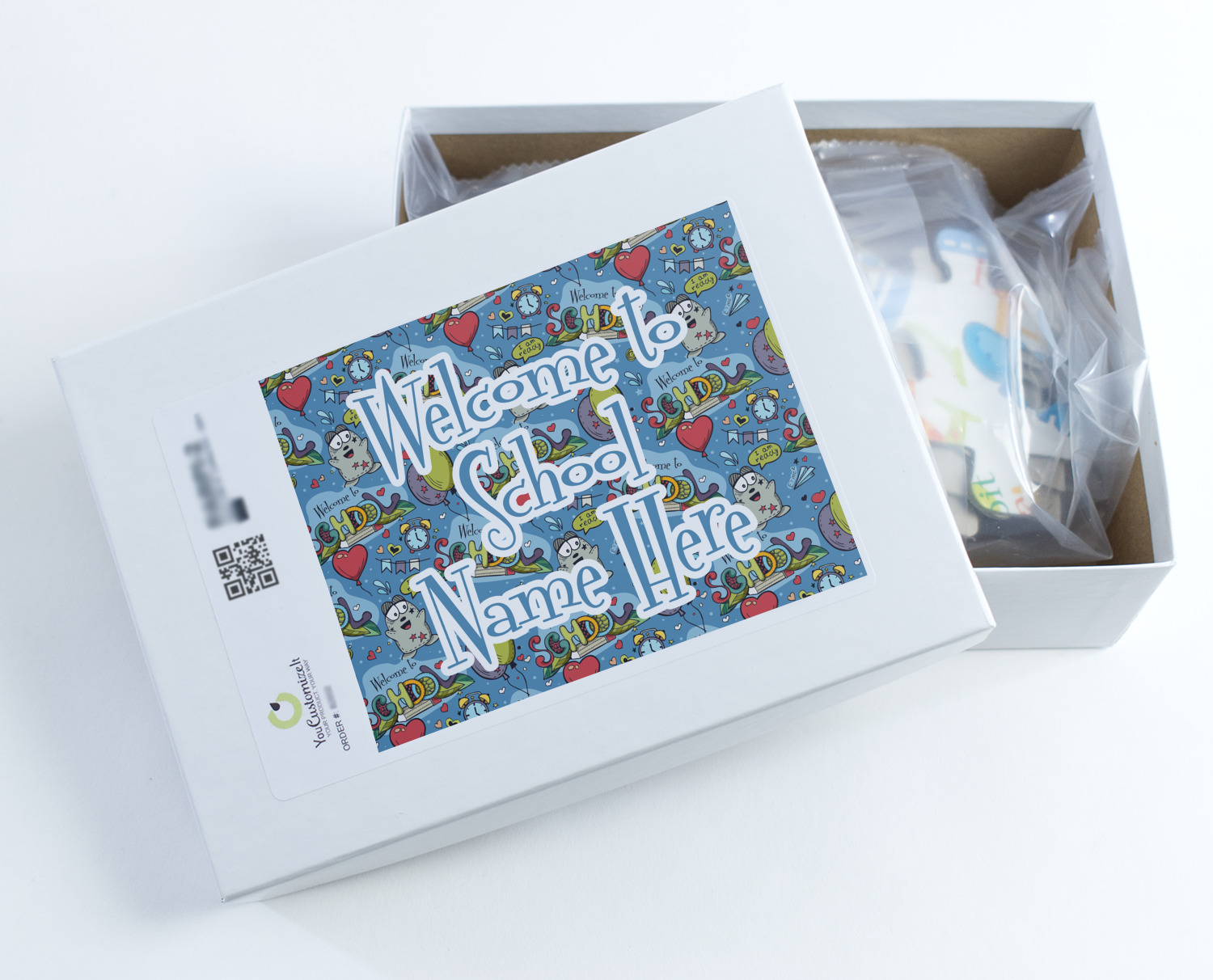 We have added the choice to personalize it with your school's name or any thing that you desire; however the choice is yours - simply remove the text if you do not want to personalize it